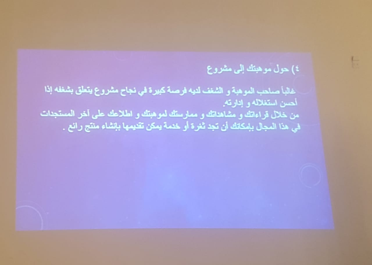 التخرج من الجامعة ، نقلة كبيرة يقدم عليها الإنسان ، وتعتبر أهم مرحلة في حياته ، فالحياة ما بعد الجامعة هي أولى خطوات الحياة العملية والمستقبلية التي ستحدد مسار الإنسان ،لذلك نظم نادي العلوم الأساسية بعمادة السنة التحضيرية - شطر الطالبات،محاضرة بعنوان ماذا بعد التخرج يوم الأربعاء الموافق 1440/5/17هـ، تحت إشراف الاستاذتين (فاتن منصور و إقبال أحمد )وبحضور منسوبات العمادة وطالباتها. وتناولت المحاضرة عدة محاور من ضمنها تعريف بالفرص الوظيفية المستهدفة للخريجات وخطوات البحث عن عمل, وكيفية التطوير الذاتي للخريجة خارج أسوار الجامعه والاستعداد لمواجهة الصعوبات التي تعيق الخريجةعند البحث عن عمل. كما تضمنت الندوة توزيع بروشورات ومطويات على الحضور تحتوي كيفية البحث عن المحفزات الإيجابية وعدم الاحباط الذي يصاحب مرحلة البحث و الحفاظ على توازنك وتذكر النعم التي لديك.