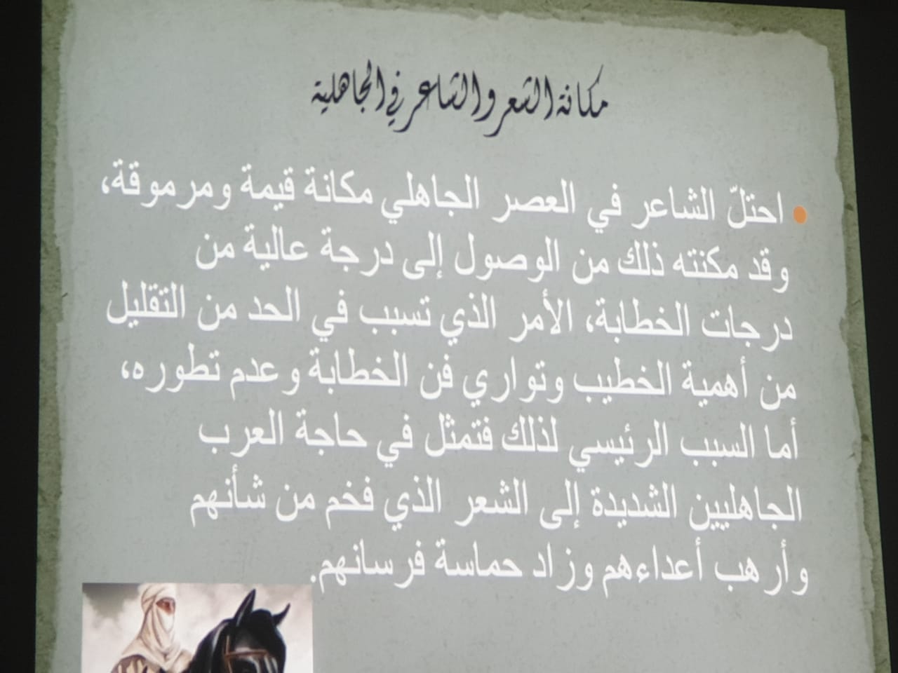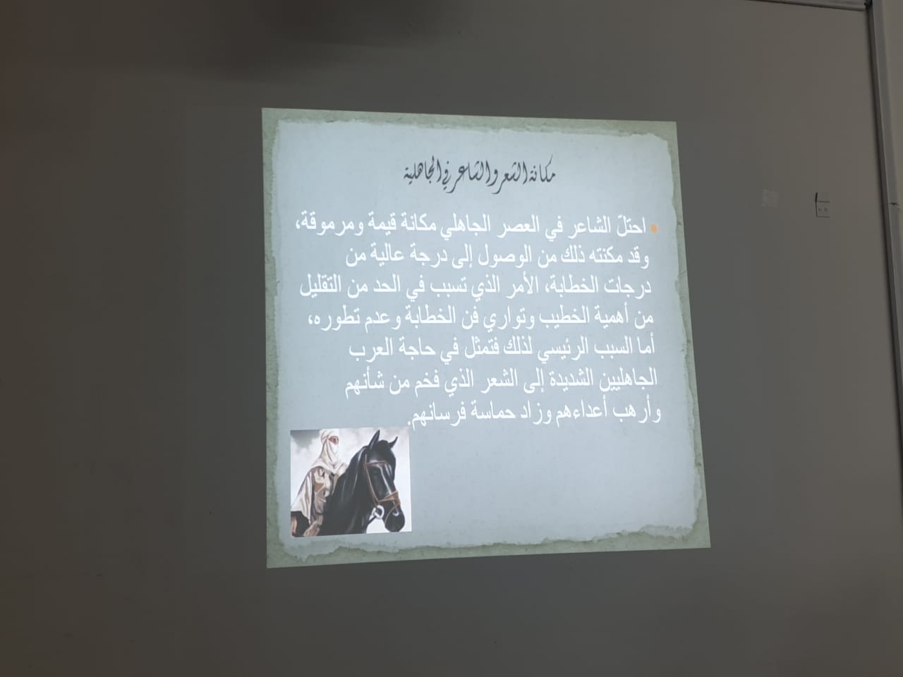نظم المجلس الطلابي بعمادة السنة التحضيرية - قسم الطالبات أصبوحة شعرية بعنوان " ماذا قالت العرب قديما " وذلك يوم الأثنين الموافق1441/4/12هـ بحضور العديد من طالبات ومنسوبات العمادة . ونظرًا لأهمية الشعر حيث أن الشعر برز في التاريخ الأدبي العربي منذ قديم العصور إلى أن أصبح وثيقة يمكن من خلالها التعرف على أوضاع العرب، حيث عرفه ابن منظور في لسان العرب بِ (مَنظُوم القول غُلِبَ عَليهِ الوَزِن والقافية وإن كانَ كُلّ عِلمٍ شِعراً)، لذا نظم المجلس الطلابي هذه الأصبوحة الشعرية من تقديم الطالبات رنيم سعد القحطاني و الهنوف العويس و سحر عبدالله ال داوود وايضا بمشاركة زميلاتهن من طالبات العمادة مريم عصام الأحمر و ذكرى الزير، حيث تضمنت الفعالية عرض تقديمي والقاء أبيات شعرية لشعراء قدماء. وقد لاقت هذه الاصبوحة إعجاب واستحسان الحضور.
