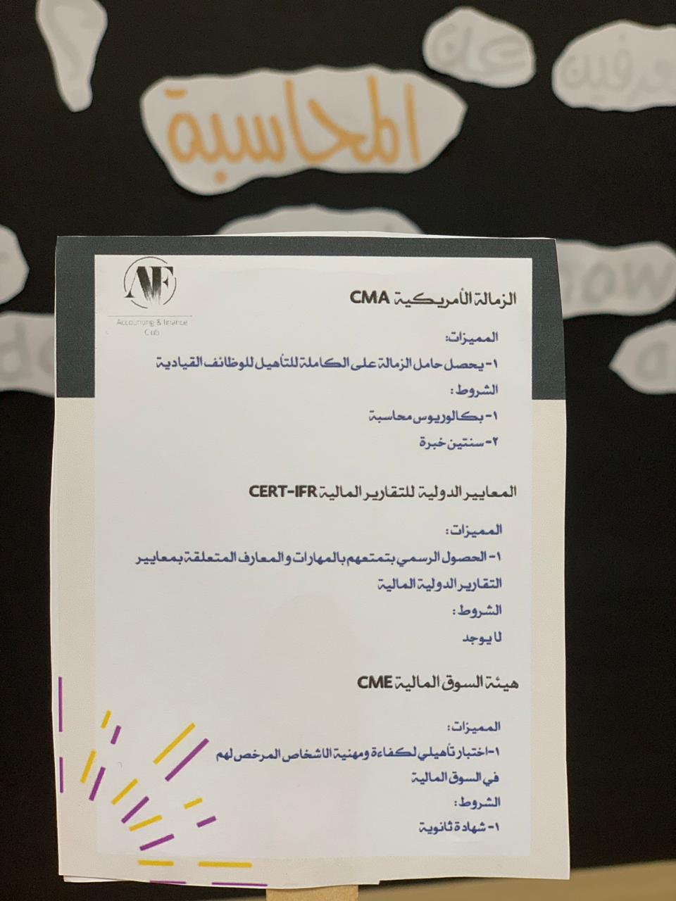 نظم نادي المحاسبة والمالية بكلية إدارة الأعمال بالخرج يوم الإثنين الموافق ٢٩/ ٥ / ١٤٤٠هـ ورشة عمل بعنوان : ماذا يعني أن تكون محاسباً ؟ من تقديم أ. مصباح العطاوي ،أ. عفاف الحربي .
