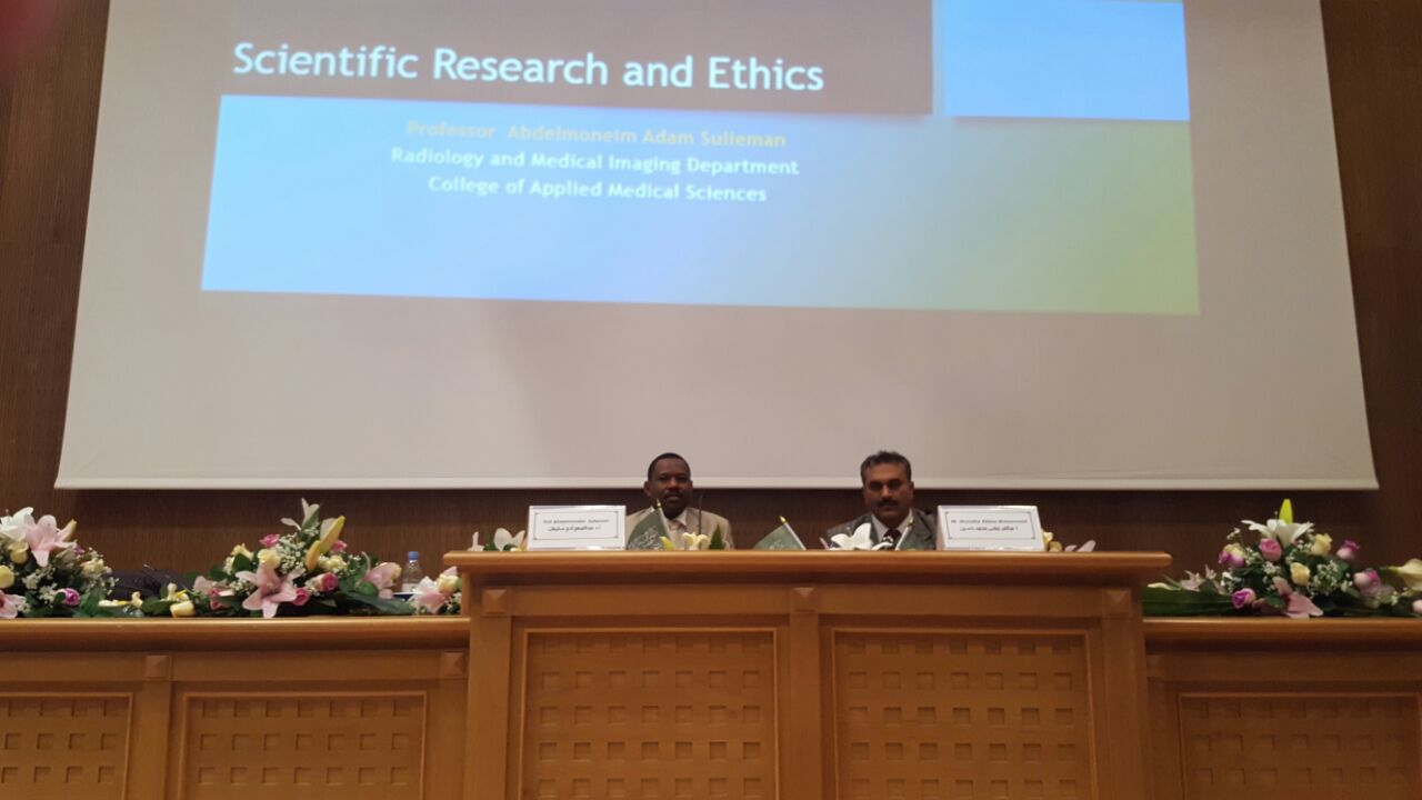 أقامت عمادة البحث العلمي - بالتعاون مع كلية العلوم الطبية التطبيقية- يوم الأربعاء 8/3/1438هـ ورشة عمل عن الأمانة العلمية وكشف التشابه والاقتباس باستخدام برنامج ايثنتيكيت بمسرح كلية العلوم الطبيّة التطبيقيّة. قدّمها كلٌّ من الأستاذ الدكتور عبدالمنعم سليمان والأستاذ مظفر عباس، في إطار سعي عمادة البحث العلمي لتطوير الأداء وتطوير قدرات أعضاء هيئة التدريس بالجامعة، حيث اشتملت الورشة على عدّة محاور كان أبرزها: