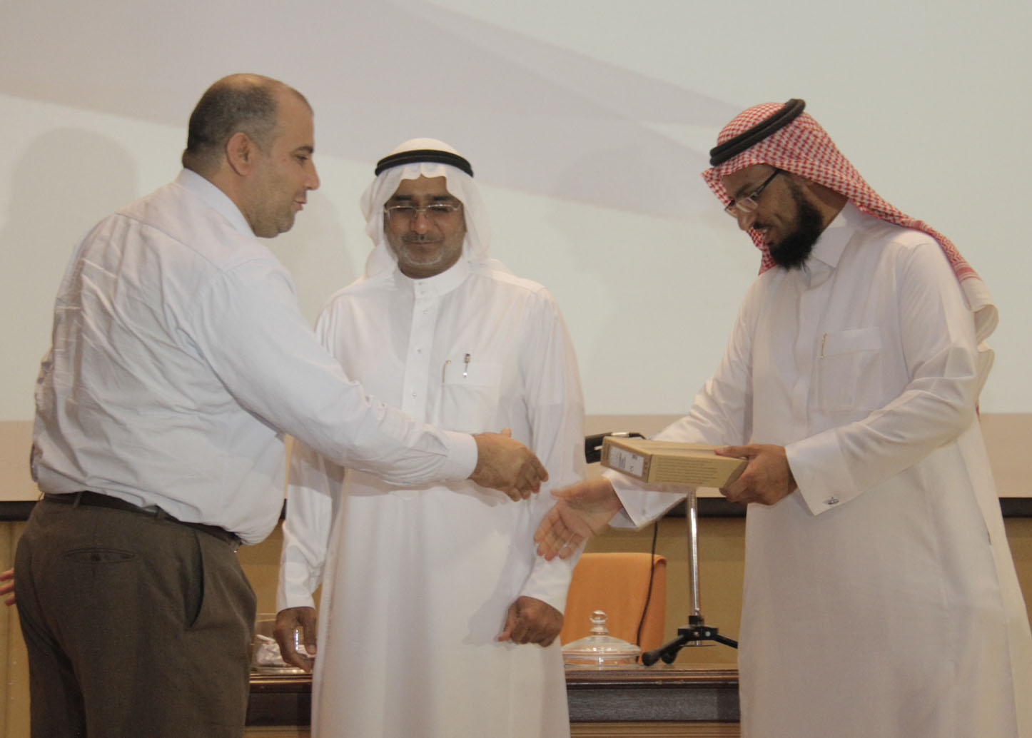 كما استقبل معالي مدير الجامعة الدكتور/ عبدالرحمن بن محمد العاصمي بمكتبه منسوبي الإدارة العامة لمنح البحوث بمدينة الملك عبدالعزيز للعلوم و التقنية و على رأسهم المشرف العام عليها الأستاذ الدكتور/ محمد أحمد خيمي وذلك بحضور وكيل الجامعة للدراسات العليا و البحث العلمي الأستاذ الدكتور/ عبدالعزيز بن عبدالله الحامد. وقد قدم معالي مدير الجامعة شكره و تقديره لمنسوبي الإدارة على تلبيتهم دعوة الجامعة لإقامة هذه الورشة التي تحقق هدفا رئيسا للجامعة نحو تنويع مصادر تمويل المشاريع البحثية لمنسوبي الجامعة.