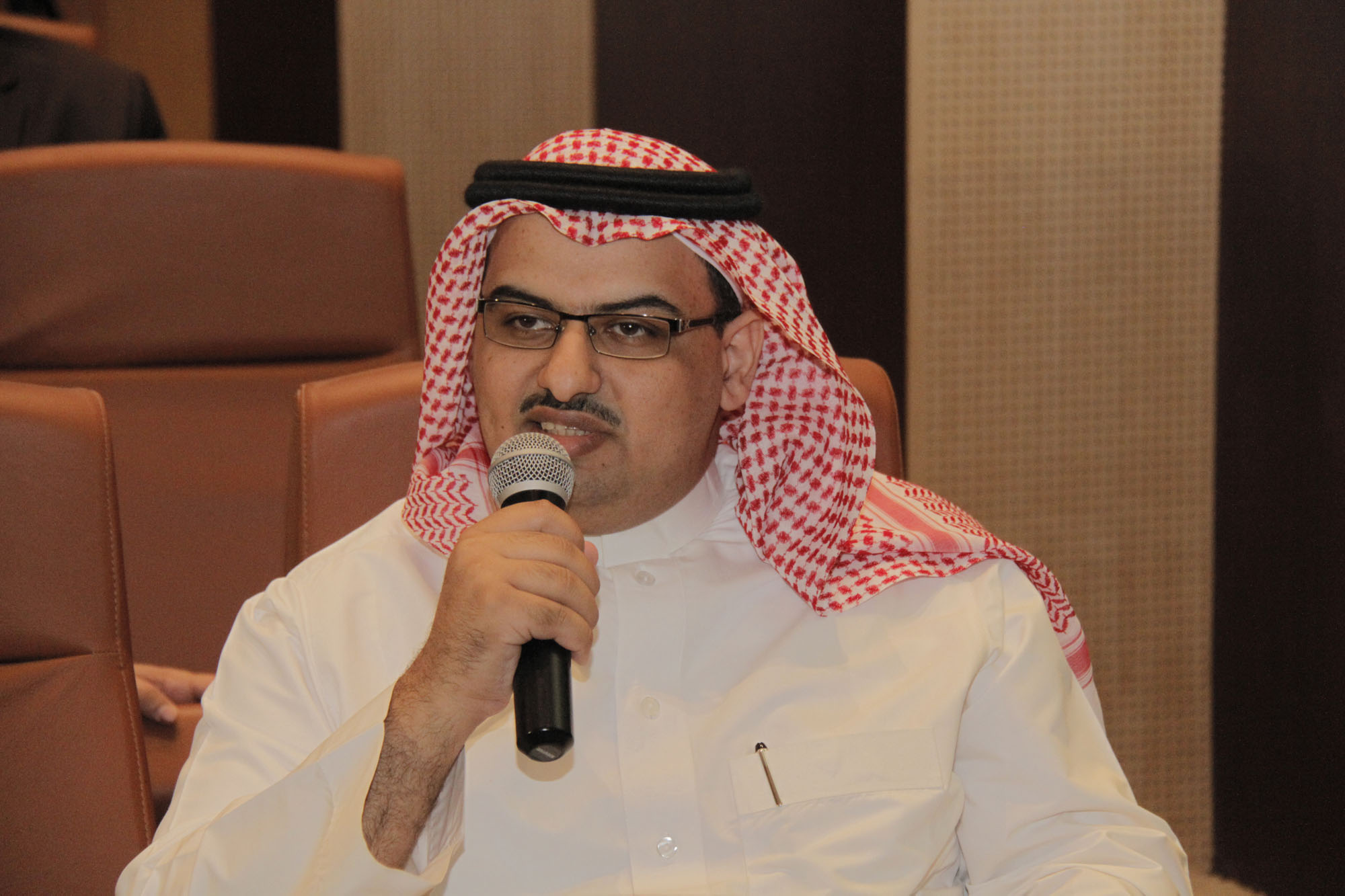 وقد بدأت الورشة بآيات من الذكر الحكيم، تلاها كلمة ترحيبة لسعادة عميد عمادة البحث العلمي د. سعد بن حمد العمران الذي رحب فيها بالحضور ، و بضيوف الجامعة من مدينة الملك عبدالعزيز للعلوم و التقنية. و قد أوضح أن إقامة هذه الورشة تشكل أحد جسور توطيد الشراكة بين الجامعة و الجهات الحكومية و خاصة مدينة الملك عبدالعزيز للعلوم و التقنية ، و التي تختص و بشكل أساسي بدعم وتشجيع البحث العلمي بما يتناسب مع متطلبات التنمية في المملكة. كما استعرض بعد ذلك إستراتيجية عمادة البحث العلمية الرامية إلى تحقيق التميز في دعم البحوث العلمية و النشر العلمي الرصين من خلال توفير أفضل السبل لدعم البحث العلمي و تهيئة بيئة بحثية محفزة وجاذبة .