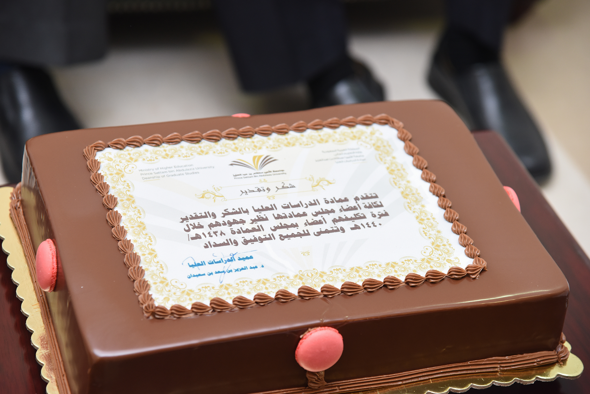 كما أكد الدكتور عبد العزيز بن سعيدان خلال حفل التكريم، إلى أن أعضاء مجلس عمادة الدراسات العليا المكرمين قامات علميّة مهمّة، ولهم دورهم الفعّال في نهضة الجامعة، مقدمًا شكره وتقديره لكل ما بذلوه من جهد وعمل، ومعتبرًا أن هذا التكريم يأتي إيمانًا من العمادة بهذا الدور المهم الذي حققوه.
