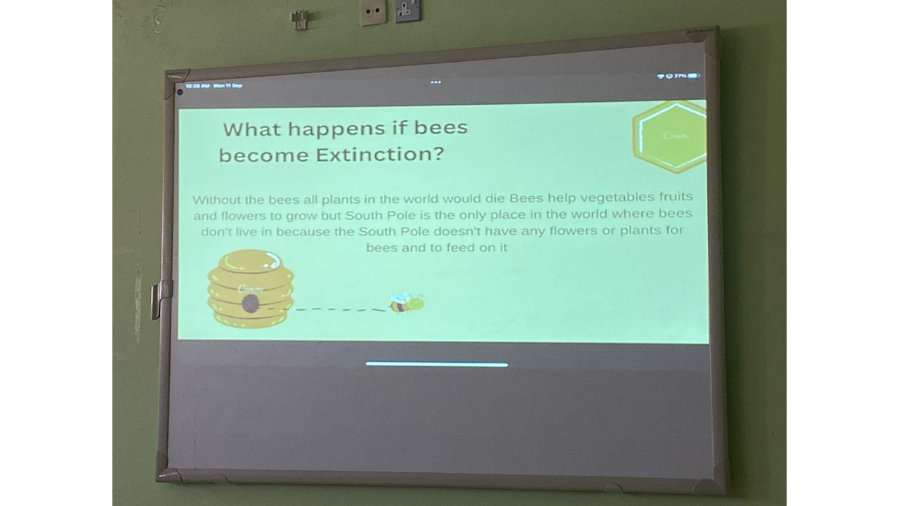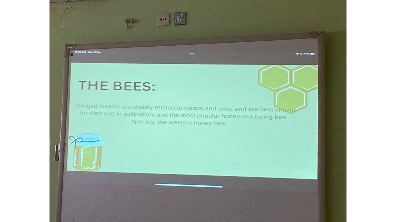 نظم نادي اللغة الانجليزية ببرنامج السنة التحضيرية –قسم الطالبات يوم الثلاثاء الموافق 11/ 3 /1445 هـ محاضرة بعنوان أهمية عسل النحل في نظامنا البيئي، استهدفت الطالبات والمنسوبات، هدفت المحاضرة التعرف على أهمية عسل النحل. حيث تم تقديم عرض من قبل الطالبات تضمن التعرف على عسل النحل ، بأنه مادّة حُلْوَة يُخْرجها النحل من بُطُونه ممَّا يجْمَعه من رحيق الأزهار وهو غذاء هام يحتوي على سكريات أغلبها أحادي وخمائر وأحماض أمينية. كما تم التحدث عن كيفية صنع النحل للعسل بأنه يقوم بتلقيح النباتات أي أنه يحمل حبوب اللقاح بين النباتات من جنسين مختلفين لتخصيبها .