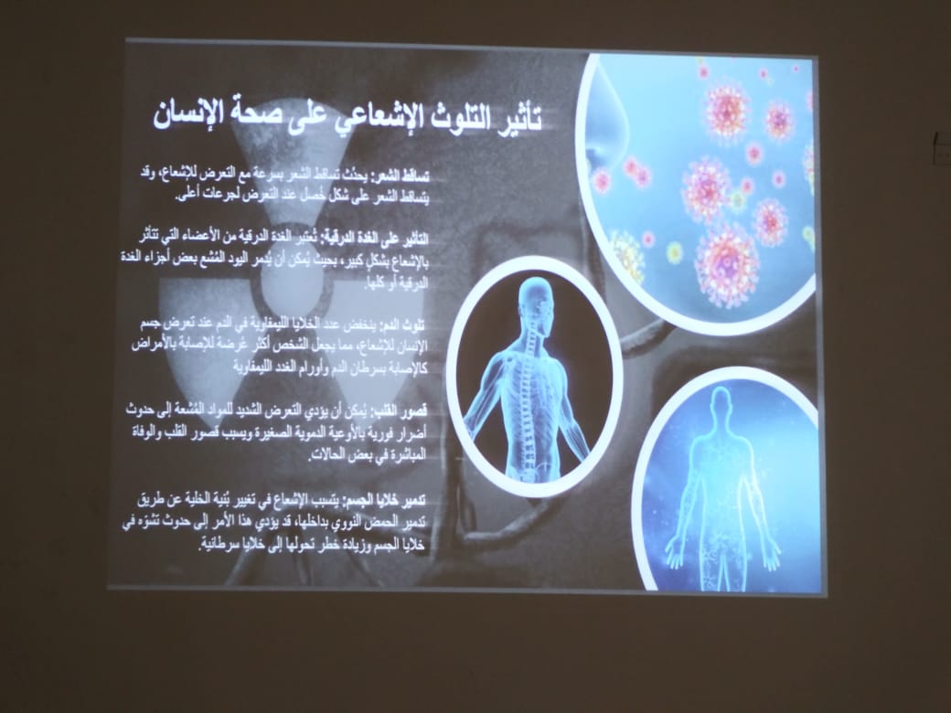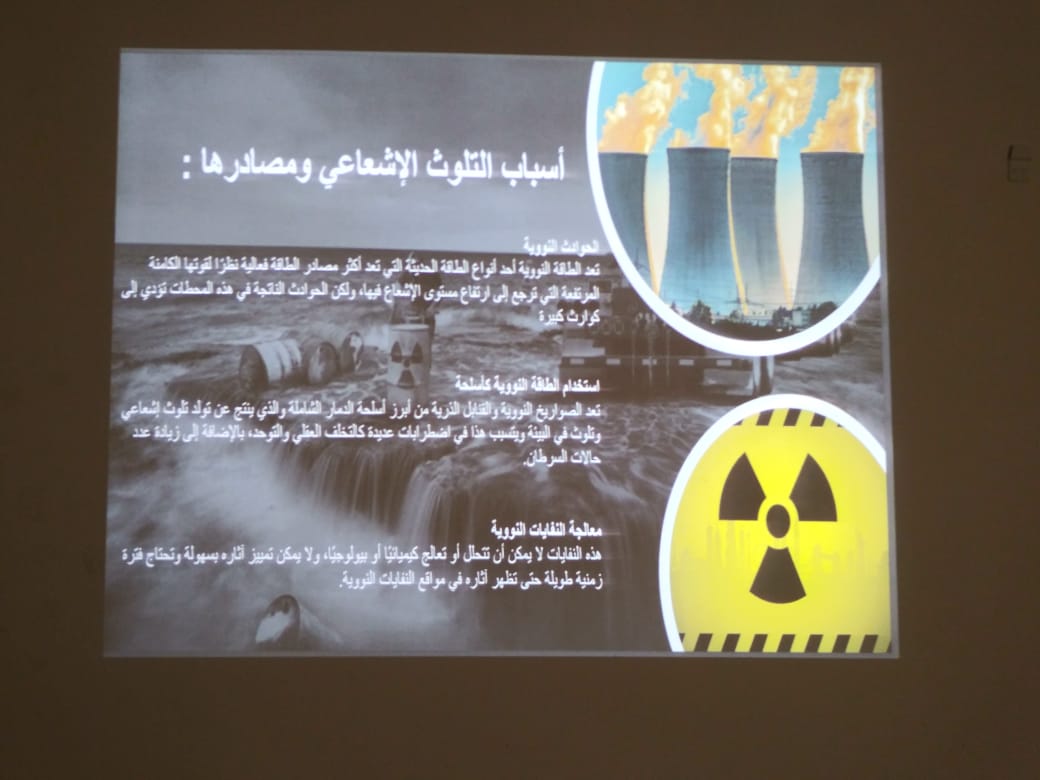 تعتبر حماية البيئة من التلوث الإشعاعي من أهم أولويات الدول، والمجتمعات، والأفراد؛ لذلك تعتبر حماية البيئة من التلوث الإشعاعي هي صمام الأمان لبيئة نظيفة وصحية، وخالية من أية أخطار أو مسببات للأمراض والكوارث. لذلك نظم نادي العلوم ببرنامج السنة التحضرية نشاط بعنوان " التلوث الإشعاعي " يوم الخميس الموافق 1444/7/11هـ،تقديم طالبات صحي المستوى الثاني بالتحضيرية تحت إشراف الدكتورة حنان فراج. وقد اشتمل النشاط على عدة أهداف منها:- المفهوم العلمي للتلوث الإشعاعي، أصبحت حماية البيئة من الأمور التي تنادي بها جميع دول العالم. كما وضحت مخاطر التلوث الإشعاعي ، وتسبب بالعديد من النتائج السلبية على صح البشر و رفاهّيتهم. كما اشتمل النشاط على أسباب التلوث الإشعاعي ومنها الحوادث النووية ، النفايات النووية. كما تم توضيح طرق التخلص من التلوث الإشعاعي ، وسائل حماية البيئة من التلوث الإشعاعي وبالنهاية شارك الحضور فى مناقشة تفاعلية وإن الإنسان يؤثرفى البيئة يتأثربها ولاقى النشاط تفاعلاً مثمراً.