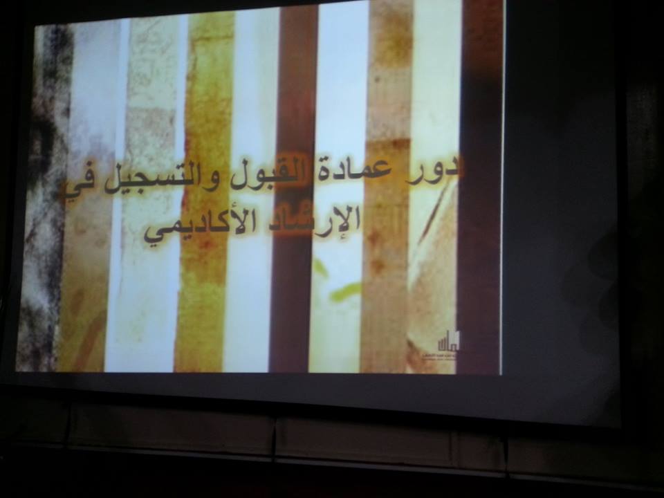 نظمت عمادة القبول والتسجيل بجامعة سلمان بن عبد العزيز ورشة عمل بكلية العلوم والدراسات الإنسانية بحوطة بني تميم قسم الطالبات بعنوان عمادة القبول والتسجيل ودورها في الإرشاد تقديم الأستاذة/هدى الجليفي في يوم الاثنين الماضي الساعة العاشرة صباحا بمسرح الكلية وقد تناولت الورشة المحاور الآتية التعريف بالإرشاد الأكاديمي- المبادئ الأساسية للإرشاد –أهداف الإرشاد- والطالبة الزائرة- والاعتذار والتأجيل. وقد حضر الورشة وكيلات الكلية ورئيسات الأقسام ومرشدات الإرشاد الأكاديمي والطالبات وقد طرحت العديد من التساؤلات من قبل المرشدات الاكاديميات والطالبات أجابت عليهن أ.هدى الجليفي.