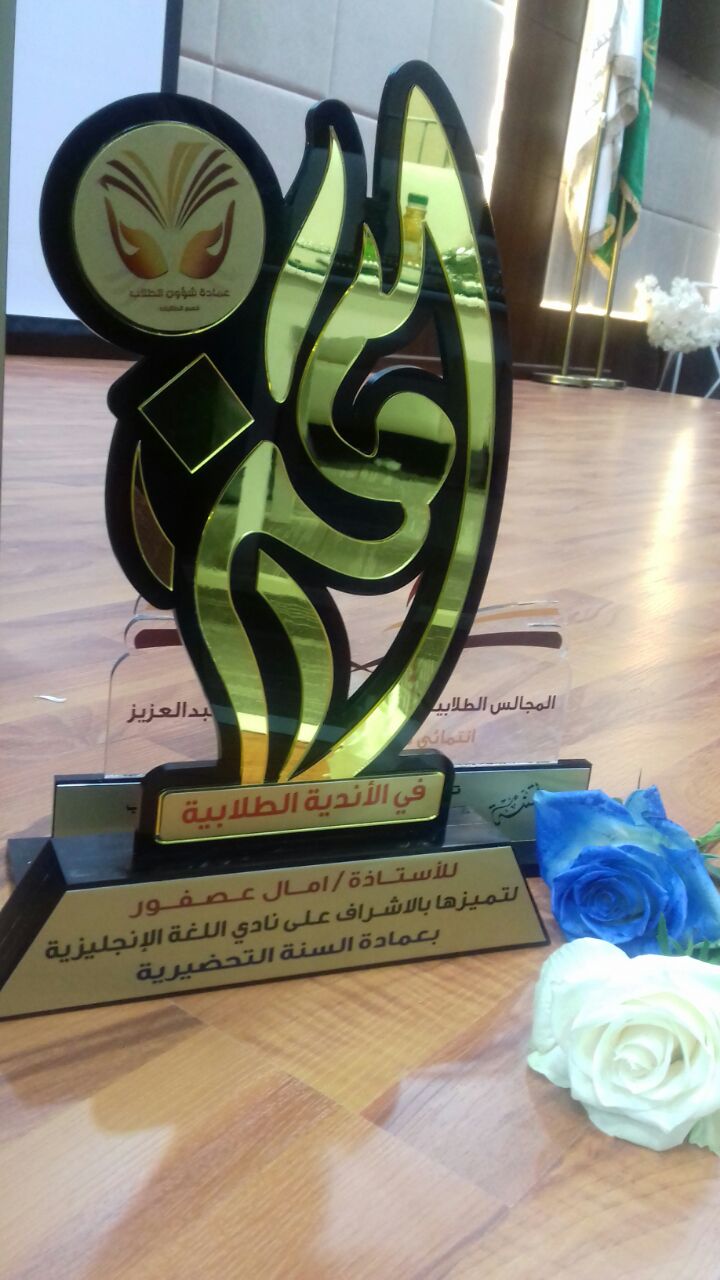 ١-درع التميز في الأنشطة الثقافية والاجتماعية لعمادة السنة التحضيرية.