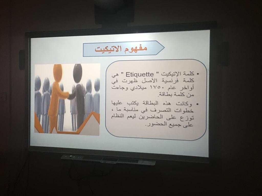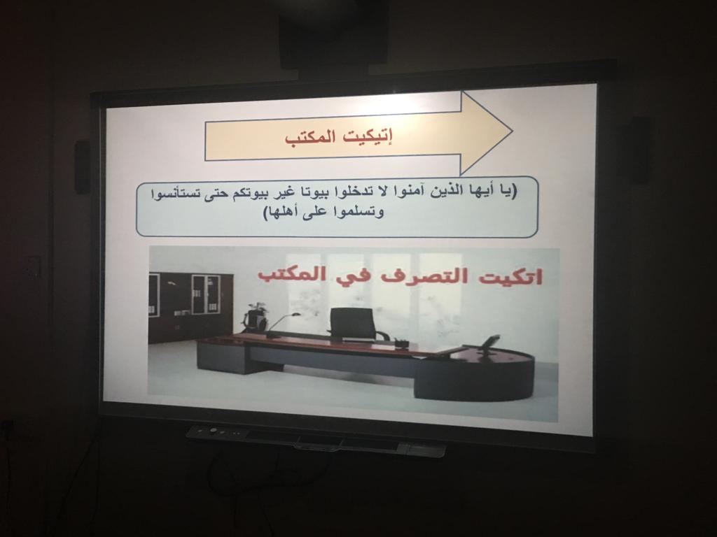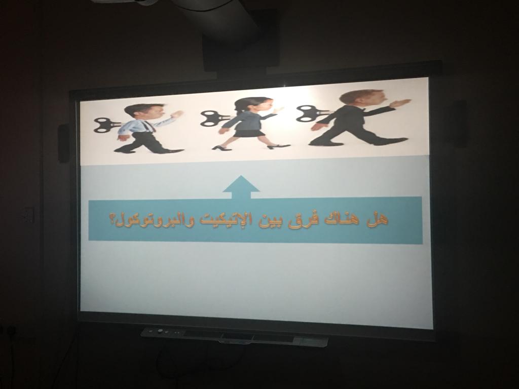 نظمت وحدة التدريب والتخطيط بعمادة السنة التحضيرية شطر الطالبات وبحضور الدكتورة/ أمل الشمراني وكيلة العمادة لشؤون الطالبات دورةً بعنوان: (الإتيكيت الوظيفي) يوم الأحدالموافق١٤٤٠/٣/٣هـ ألقتها الأستاذه/ إلهام الشمري مساعدة الوكيلة للشؤون الأكاديمية والتعليمية ومحاضر في قسم تطوير الذات بالعمادة واستهدفت فيها عضوات هيئة التدريس وأعضاء الهيئة الإدارية. استفتحت المدربة الدورة بمقدمة عن الإتيكيت الوظيفي وأوضحت الفرق بين الإتيكيت والبروتوكول. كما أضافت الأستاذه إلهام أهم مطالب الإتيكيت الوظيفي، اتيكيت التحية، اتيكيت المكتب، اتيكيت الحديث، اتيكيت الأسبقية، اتيكيت المجاملة واتيكيت المزاج وأوضحت من خلالها مفهوم كل اتيكيت مع إرفاق بعض الأدلة المناسبة من القران والسنة. وبالنهاية شارك الحضور في مناقشة تفاعلية تم من خلالها تبادل التجارب والخبرات ولاقت الدورة تفاعلاً مثمراً بين الحضور والمدربة.