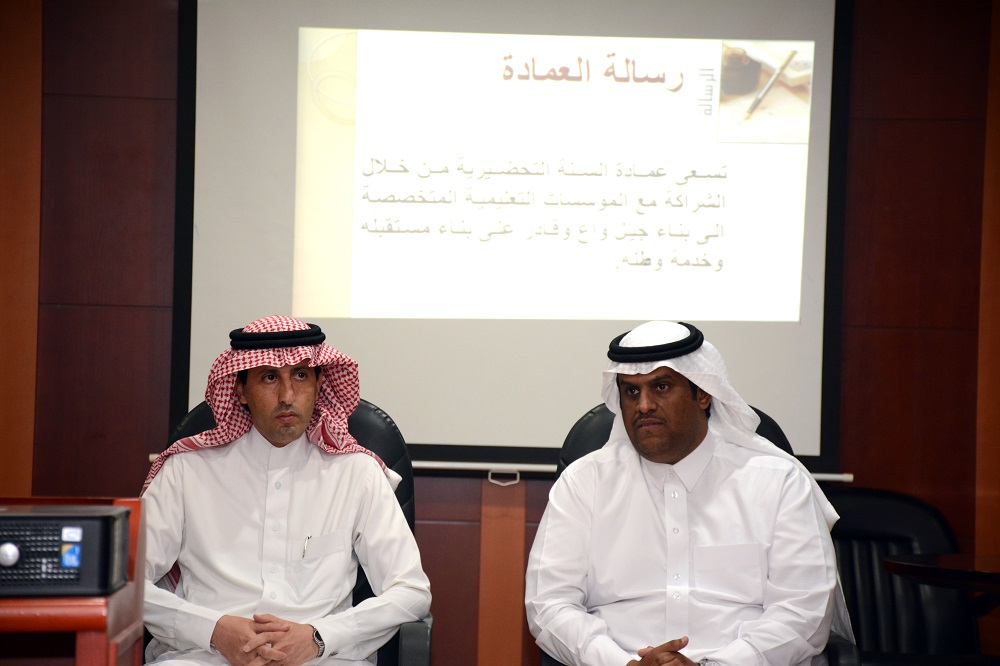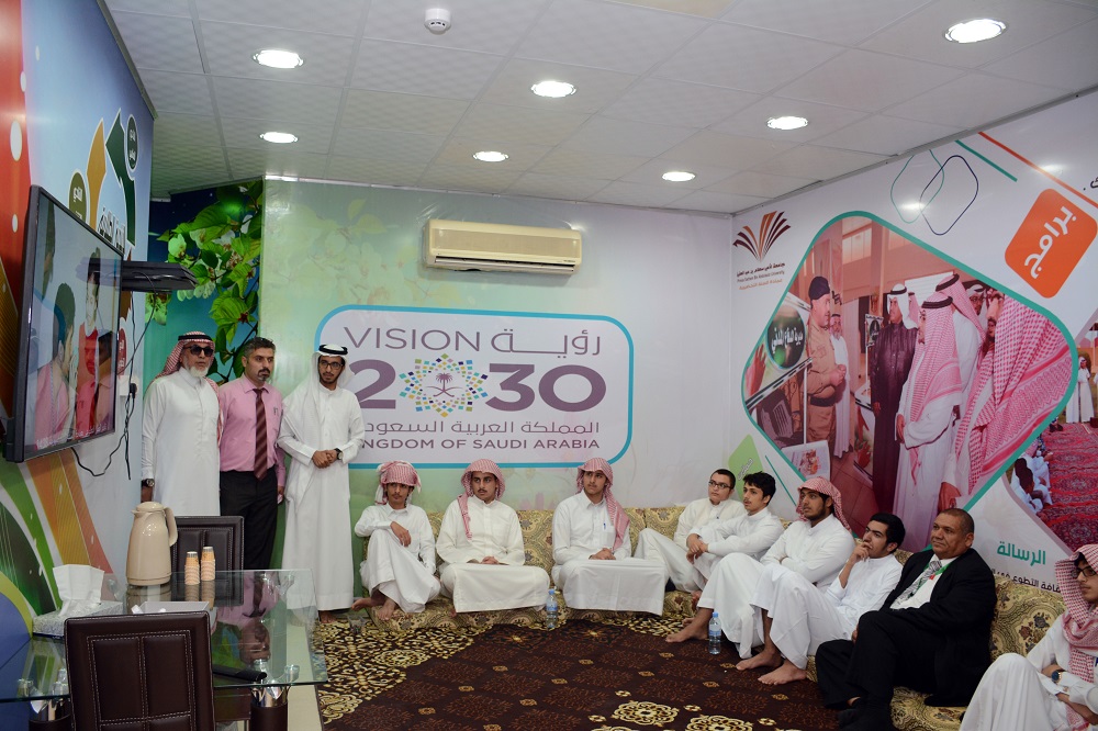 وقد حظي الوفد بلقاء مع عميد السنة التحضيرية الدكتور مشاري بن عياد العصيمي ووكيل العمادة للشؤون التعليمية والأكاديمية الدكتور فهد بن شهيل العلوي ، حيث بدأ الأول بالترحيب بالطلاب موجها رسائله لأبنائه الطلاب ، وكان مما ذكر أهمية الزيارة لدى الطالب في إيجاد تصور واضح عن الجامعة والإسهام في اختيار التخصص المناسب بعد الاطلاع على التخصصات المتاحة في الجامعة . كما تحدث سعادته عن جانب القدرات والميول وضرورة مراعاة الطالب لقدراته وتجنب ميول الآخرين ، والعمل على تطوير القدرات لتصب في خدمة الوطن. كما وتطرق سعادته للحديث عن السنة التحضيرية وما تمثله للطالب الجامعي متحدثا عن مساريها ، تاركا المجال لسعادة الوكيل الذي بدوره تحدث عن ضرورة استباق الوقت في تعلم اللغة الإنجليزية والاستفادة من أوقات الفراغ والعطل الرسمية قبل الدخول في برنامج العمادة ، مقدما بعض النصائح للطلاب ، ومشيرا إلى ضرورة الاستفادة من الخدمات التي تقدمها العمادة ، وفاتحا باب الاستفسارات .وفي النهاية توجه الوفد إلى نادي الجوالة وكان باستقبالهم الطالب عبدالله بن عبد الرحمن القيشان الذي أعطاهم فكرة عن النادي ، مبينا أهدافه والأدوات المستخدمة فيه .
