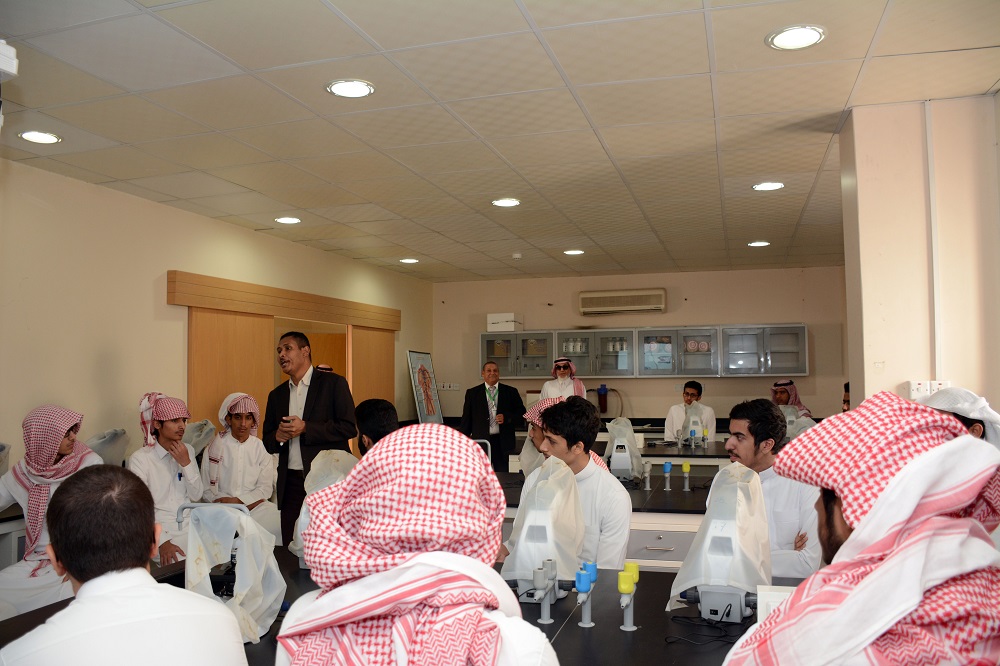 ثم انتقل الطلاب إلى معمل الأحياء، ، وتم شرح أبرز أجهزته وأغراض استخدامها، بعدها قدم د. فاروق التميمي رئيس قسم اللغة الإنجليزية، عرضا عن القسم في مقر نادي اللغة الإنجليزية، بين من خلاله الخدمات التي يقدمها القسم للطلاب، وبين دور وماهية الأساسيات التي ينبغي على الطالب امتلاكها في اللغة الانجليزية وكيفية الحصول عليها.