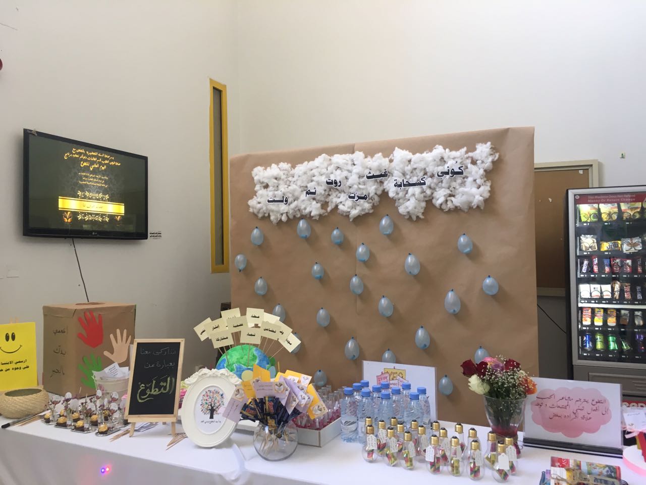 واختتم الحفل بافتتاح الدكتورة نورة الزعاقي للأركان التي شاركت بها الجمعيات المشاركة ووحدة العمل الطلابي بعمادة السنة التحضيرية التي عُرض فيها العديد من الأعمال والمبادرات وعرض مجسمات وتوزيع بروشوراتٍ ومطويات على الحضور تحتوي على عبارات عن أهمية التطوع و آثاره على المجتمع.