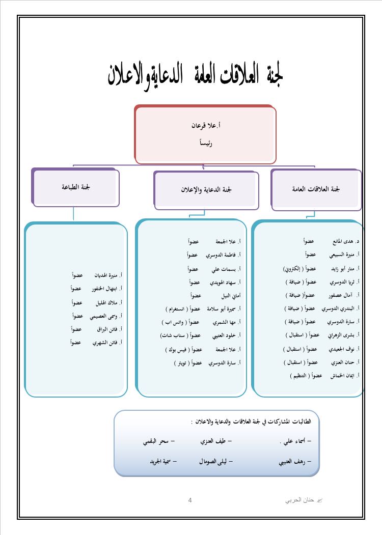وانطلقت بعدها اللجان بالقيام بالمهام الموكلة اليهم من قبل منسقة الملتقى وتحت إشراف ومتابعة وكيلة العمادة. وكان اللقاء التعريفي الأول اشارة الانطلاق
