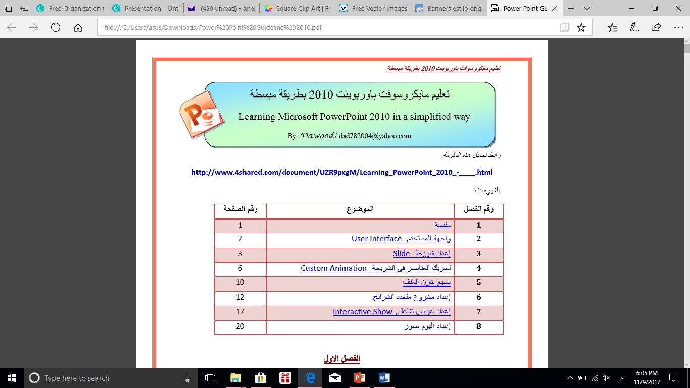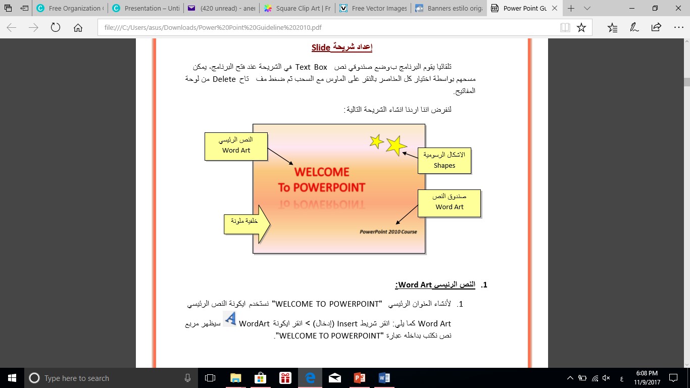برعاية وكيلة عمادة السنة التحضيرية للشؤون الأكاديمية والتعليمية – شطر الطالبات- الدكتورة أمل بنت صالح الشمراني. نظمت وحدة خدمة المجتمع اليوم الخميس الموافق 20-2-1439 هـ دورة تدريبية بعنوان " العروض التقديمية PPT" إعداد وتقديم أ. سميرة سلامة وذلك ضمن برامج مشروع " استخدام الحاسب في الأعمال المكتبية" والذي يهدف لزيادة مهارات الحاسب للعاملين بالهيئات الحكومية كما استهدف العديد من الجمعيات الخيرية التطوعية.