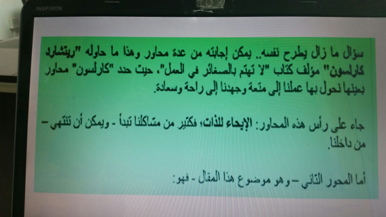 وقد احتوت الدورة على عرض مرئي عن : ضغوط العمل وكيفية علاجها للدكتور / محمد بن مترك آل شري القحطاني