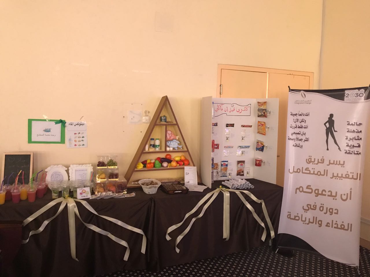 استقبلت وحدة خدمة المجتمع بعمادة السنة التحضيرية قسم الطالبات أعضاء فريق التغيير المتكامل المتخصص في التغذية والرياضة حيث قدموا نصائح نحو حياة صحية سليمة وذلك يوم الأحد الموافق 23/2/1439 هـ بقاعة اليمامة في تمام الساعة 10:30 في دورة بعنوان " الصحة والرشاقة" . حضر اللقاء العديد من الطالبات ومنسوبي العمادة