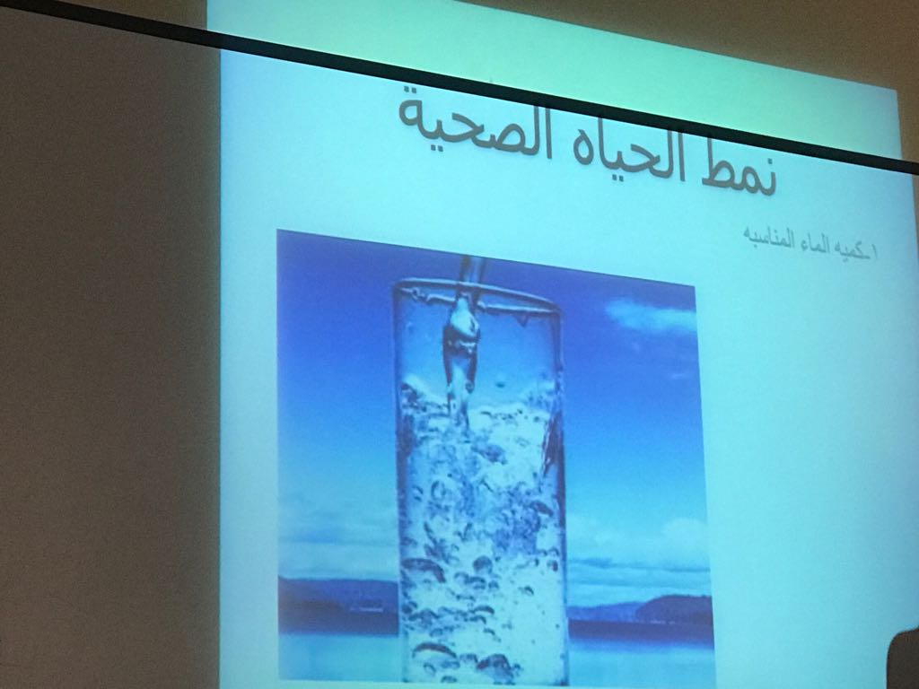 حيث بدأ اللقاء بعرض تقديمى قدمته كوتش حنان فهد ناجي عن أهمية ممارسة الرياضة والأخطاء الشائعة عند ممارستها كما قامت أ. أحلام التميمي بشرح لطرق التغذية الصحية السليمة بالمجسمات التوضيحية و توزيع عينات من وجبات صحية على الحضور . اتسم اللقاء بالتفاعل بين الطالبات وأعضاء الفريق حيث تم عمل مسابقة للطالبات عما قدم من معلومات خلال الدورة ، ووزعت من خلالها الهدايا على الفائزات على شكل خصومات واشتراكات مجانية يومية وشهرية لصالة الألعاب الرياضية لمجمع "عيادات طبيبك". واختتم اللقاء بتقديم شهادات الشكر والتقدير لأعضاء الفريق من قبل العمادة لمجهودهم الرائع متمنين لهم التوفيق والسداد.