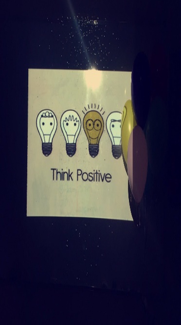 نظّمت مجموعة من طالبات القسم الموحد G6 ، عرض تقديمي عن التفكير الإيجابي؛ حيث قامت الطالبات بتوظيف اللغة الإنجليزيّة في عرض أهم جوانب التفكير الإيجابي والفوائد العائدة منه على حياة الطالبات، كما تمت مناقشة الحضور حول بعض الأحداث التي مرت بهنّ، ثم خرجن منها بتفكير إيجابي .