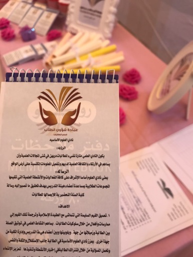 بحضور وكيلة عمادة السنة التحضيرية الدكتورة أمل صالح الشمراني قامت طالبات العمادة يوم الخميس الموافق ١٩-٥-١٤٣٨ هـ بافتتاح أركان تعريفية للأندية الطلابية والمجلس الطلابي بالعمادة للطالبات المستجدات لهذا الفصل والتعريف بمهام كلٌ منهم على حده وأهميتها في مسيرة الطالبة الدراسية لما فيها من تعزيز للجوانب التربوية والتعليمية التي تدرسها الطالبة نظريا في المقررات الدراسية وترجمتها إلى أفعال وسلوك