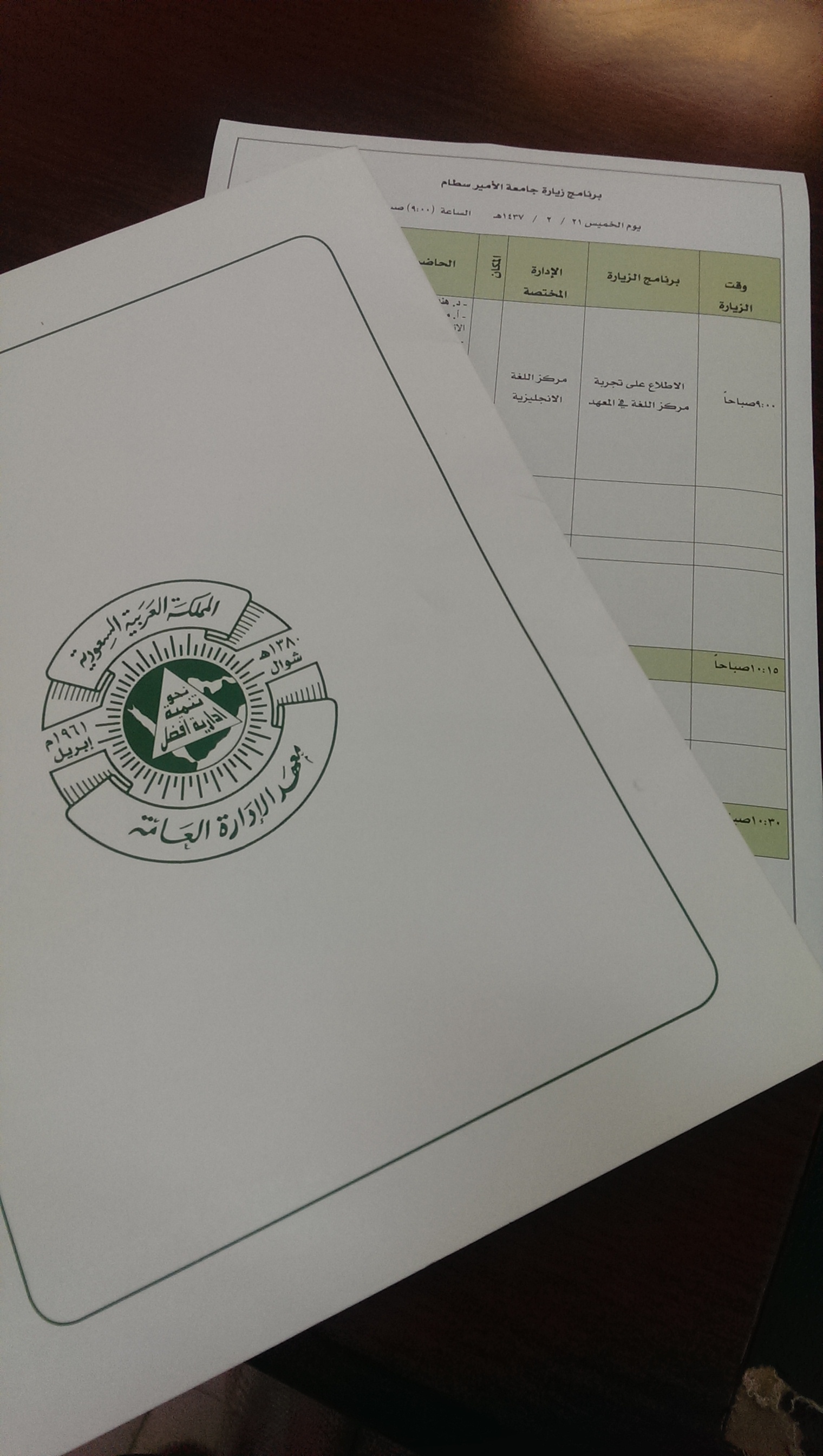 1- لقاء مع مديرة عام الفرع د. هند آل الشيخ ومديرة مركز اللغة الإنجليزية ورئيسة قطاع اللغة الإنجليزية ومديرة إدارة البرامج الإدارية والقانونية ومديرة برامج الإدارة المكتبية والمعلومات والبرامج المالية والإقتصادية وكذلك مديرة إدارة البحوث والاستشارات.