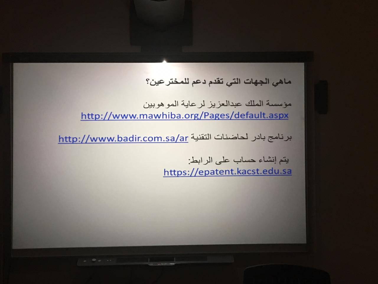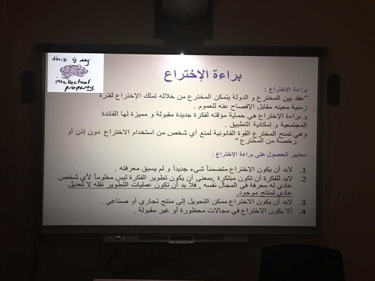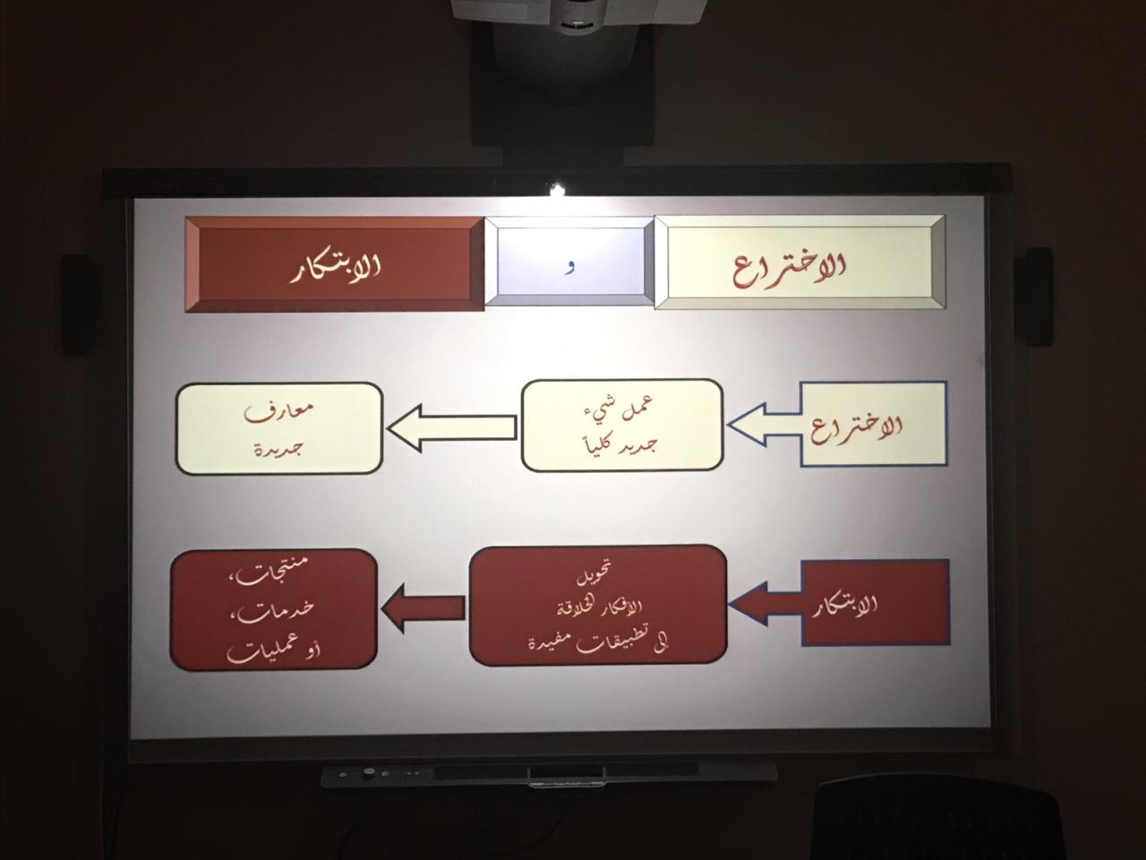 توالت فعاليات مسيرتنا الناجحة بإذن الله وضمن فعاليات الملتقى العلمي الثالث بعمادة السنة التحضيرية, أقيمت دورة تدريبية بعنوان الاختراع خطوة للإبتكار ومن تقديم الدكتورة حنان فراج وذلك يوم الاحد الموافق 1440/5/14هـ في قاعة التدريب والتخطيط, حيث استهلت الدورة التدريبية بعرض تقديمي يتضمن عدة محاور وهي: ماهو الإبتكار وماهو الاختراع ؟ مالفرق بينهما ؟ وماصفات المبتكرين , براءة الاختراع وماهي الجهات الداعمة للاختراعات والإبتكارات؟, ومن ثم تم استعراض إبتكارات واختراعات الطالبات بما يلزم, والعمل على تنظيم مشاركاتهن, ومن خلال ذلك تم تبادل الأسئلة والاستفسارات من قبل الطالبات التي تسهم بالفائدة لمشاركاتهن في محور الابتكارات والاختراعات .