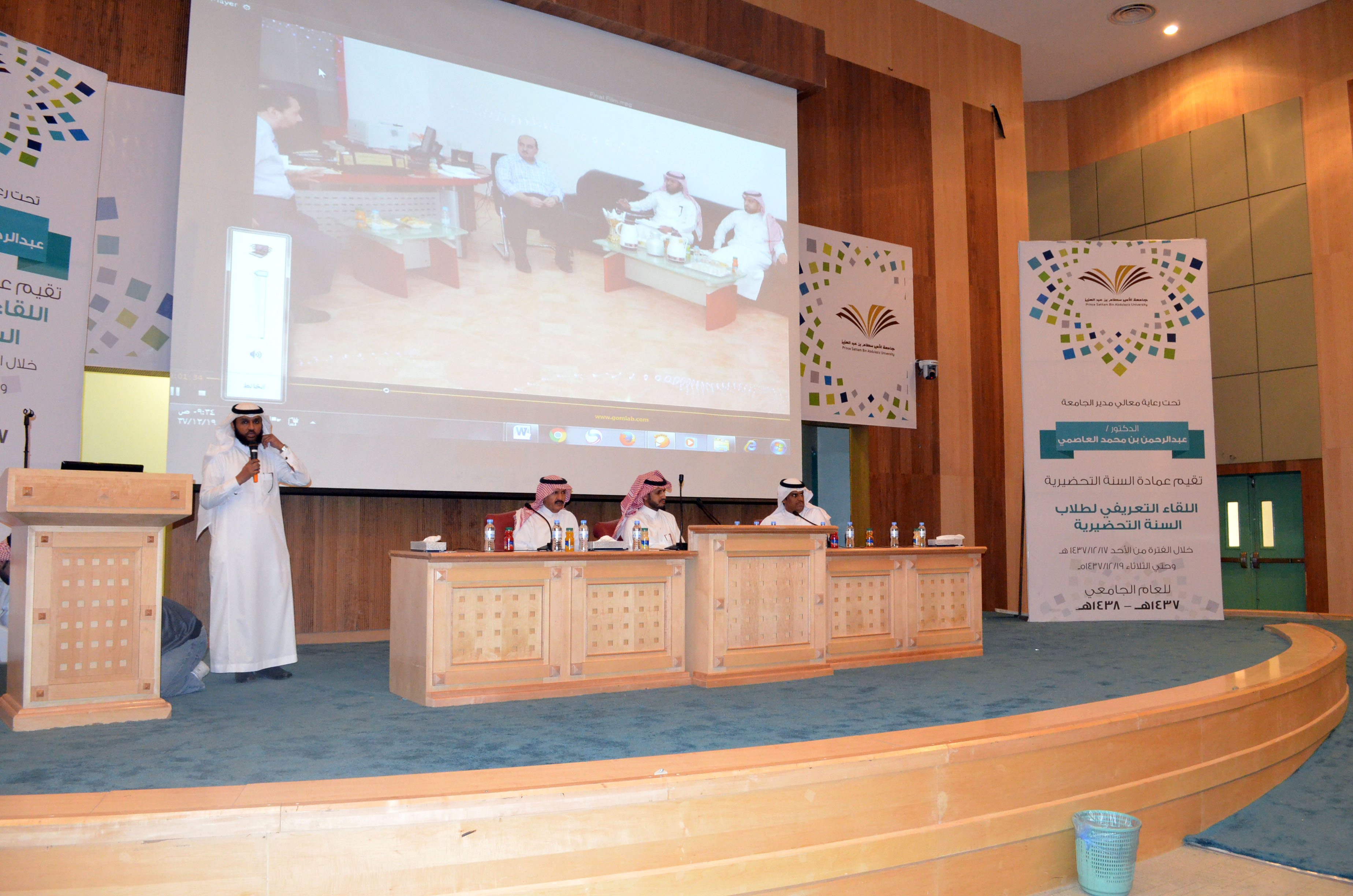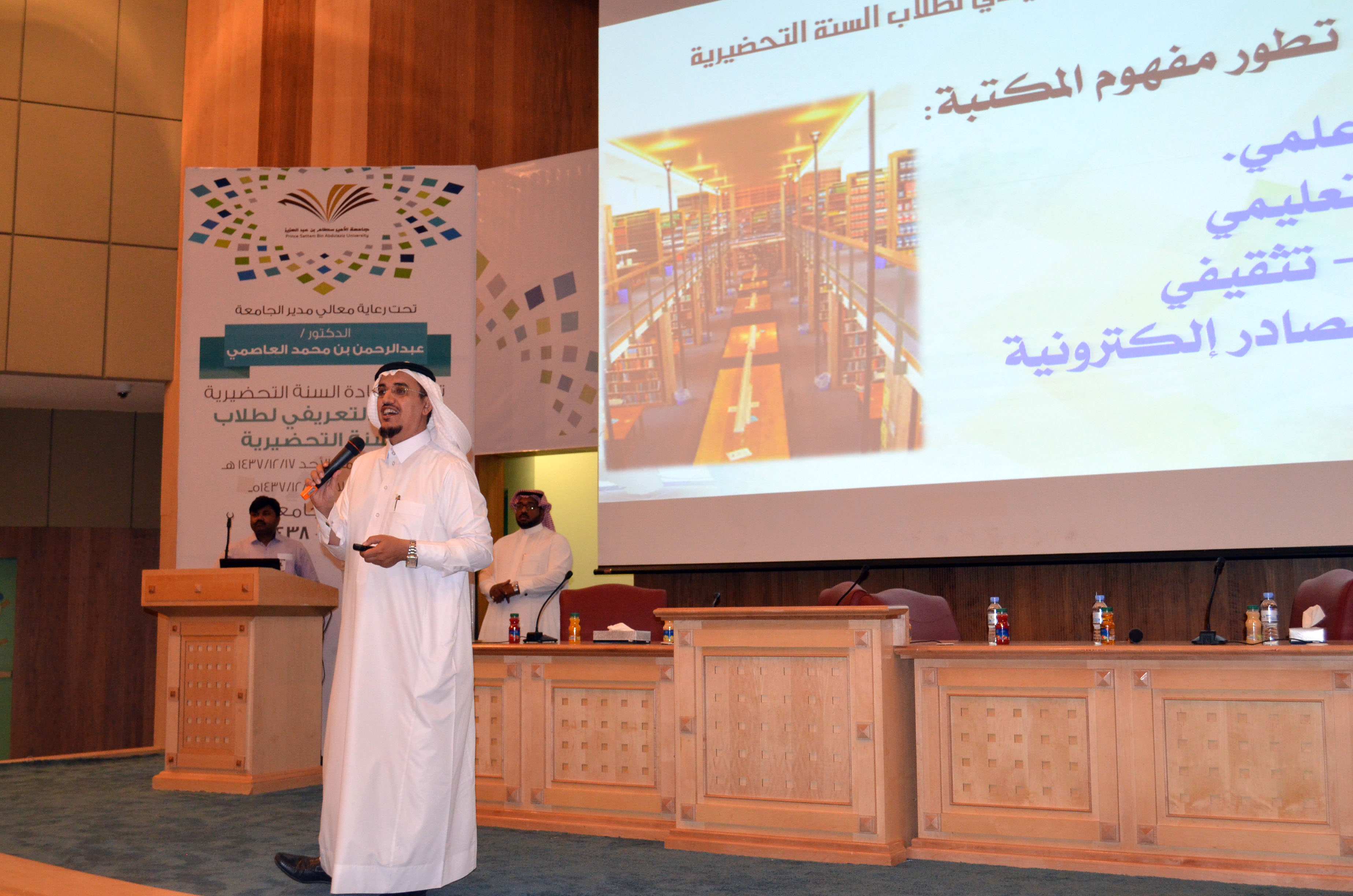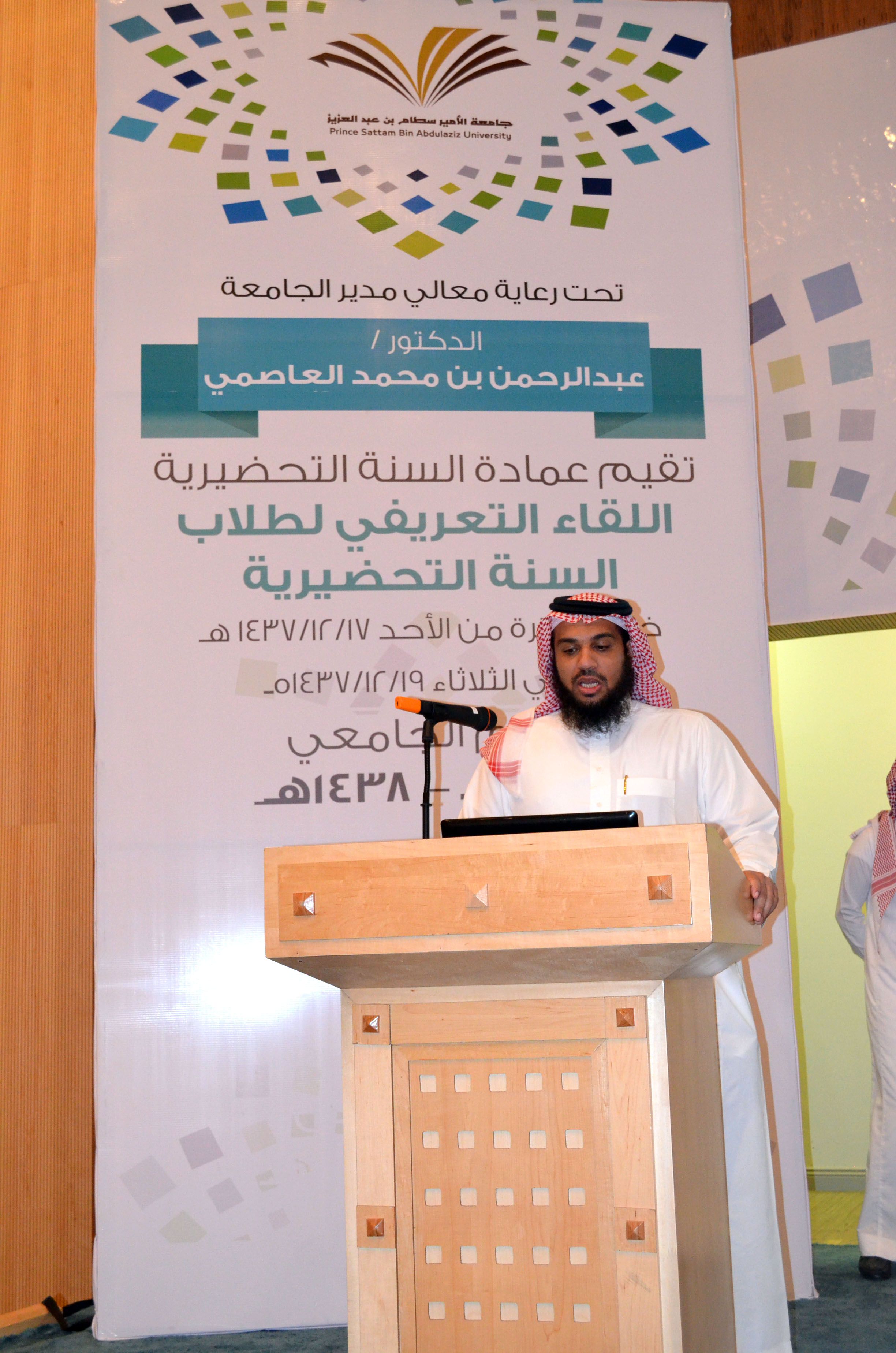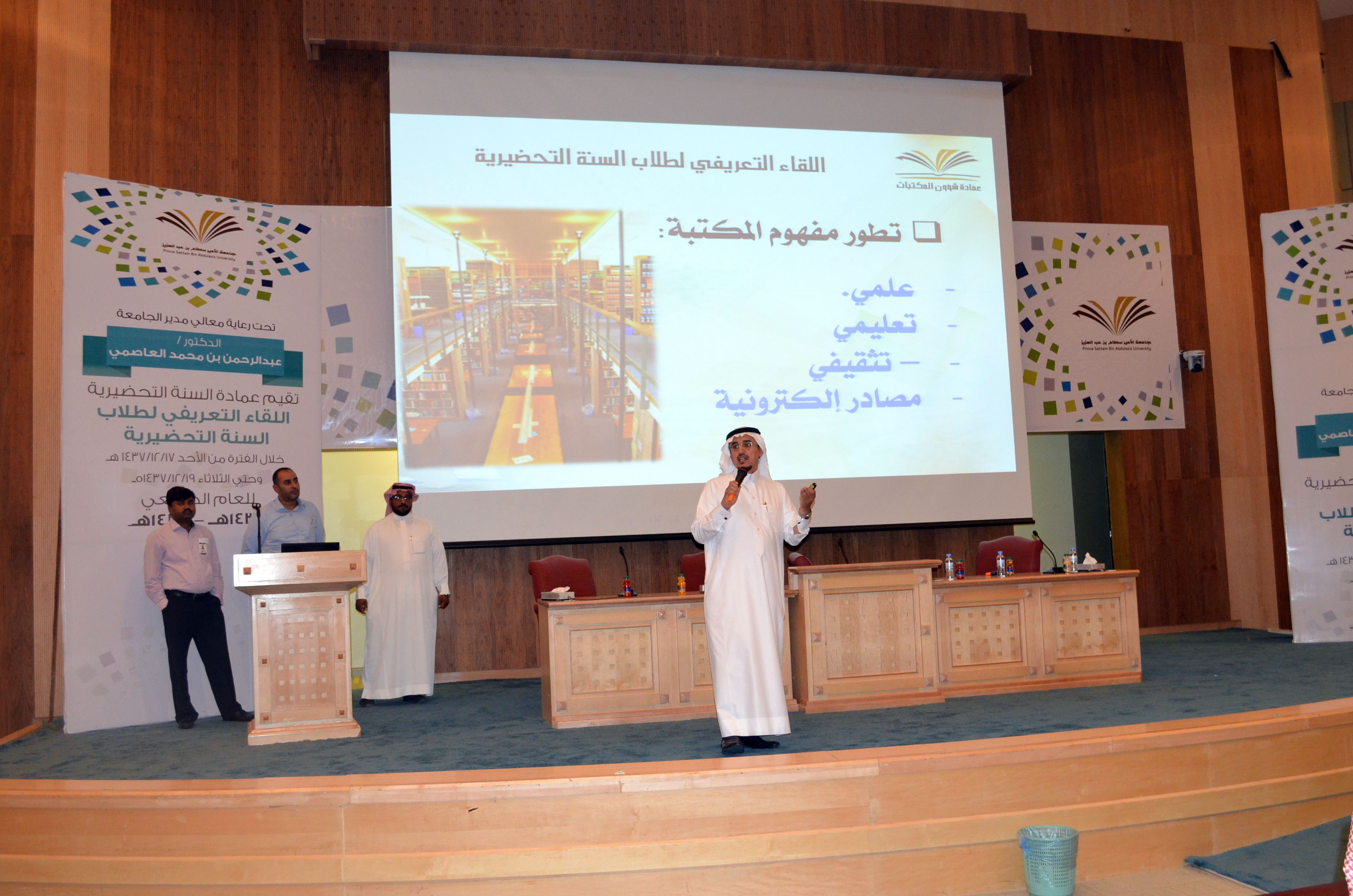 اختتمت عمادة السنة التحضيرية البرنامج التعريفي للطلبة المستجدين وذلك يوم الثلاثاء 19-12-1437هـ بلقاء مع عمادة شؤون الطلاب وعمادة تقنية المعلومات وعمادة شؤون المكتبات والذي سبقه لقاء معالي مدير الجامعة ولقاء عمادة القبول والتسجيل، ونبذة عن السنة التحضيرية ونظام الدراسة، واختبار لتحديد مستوى اللغة الإنجليزية.