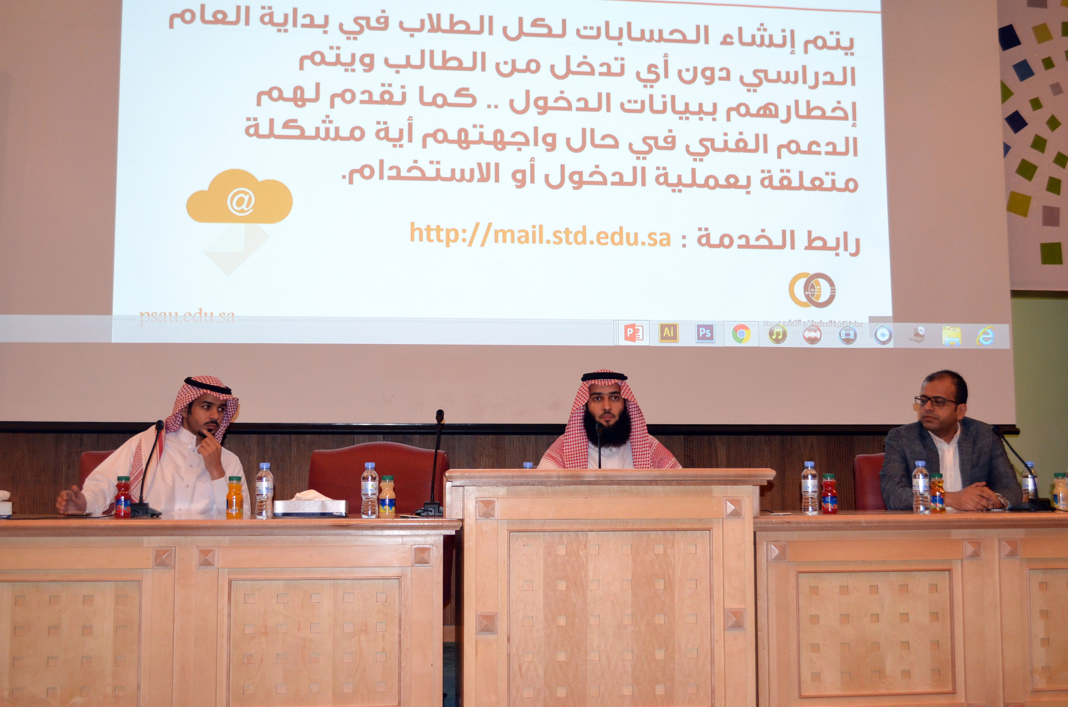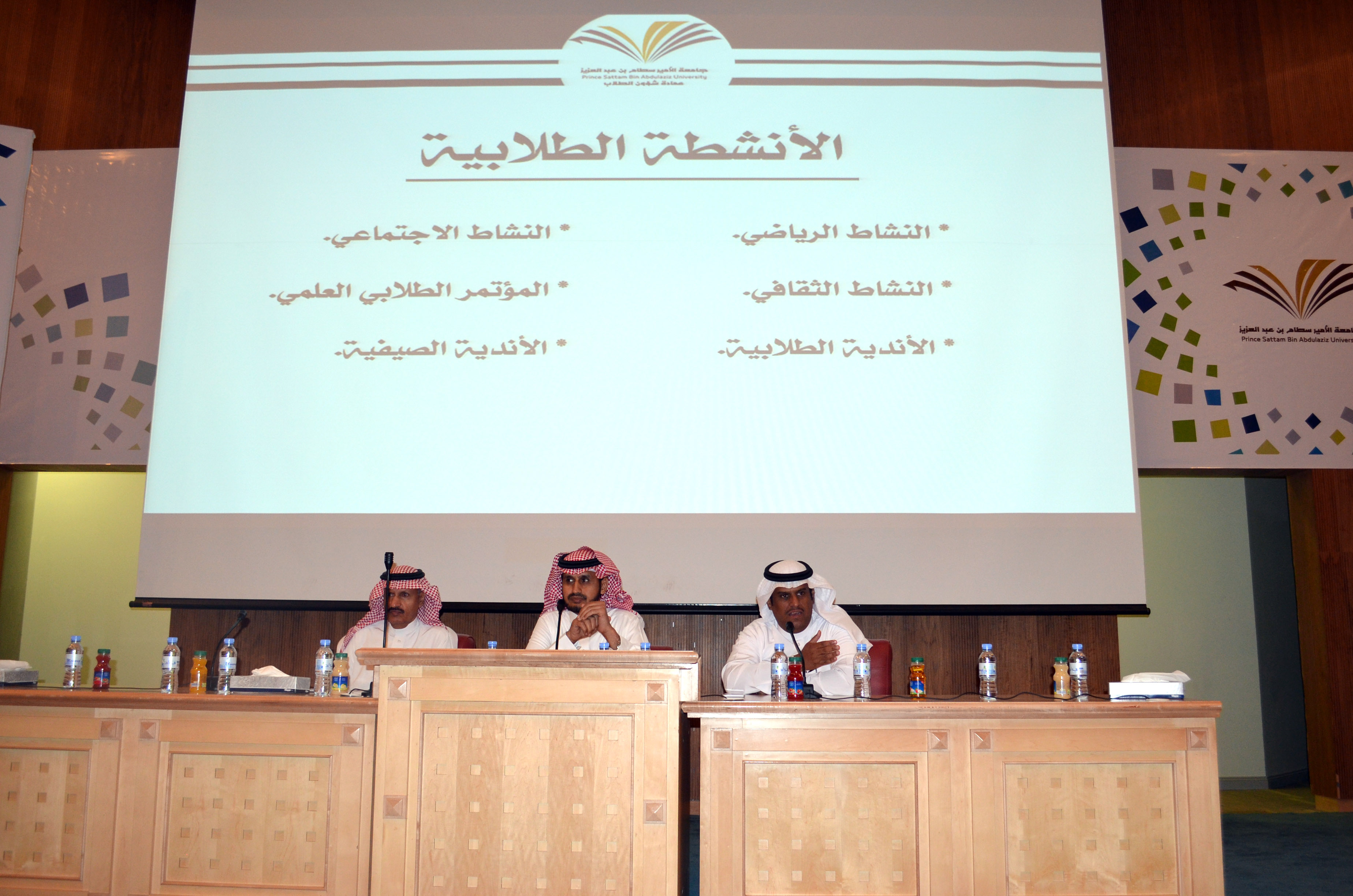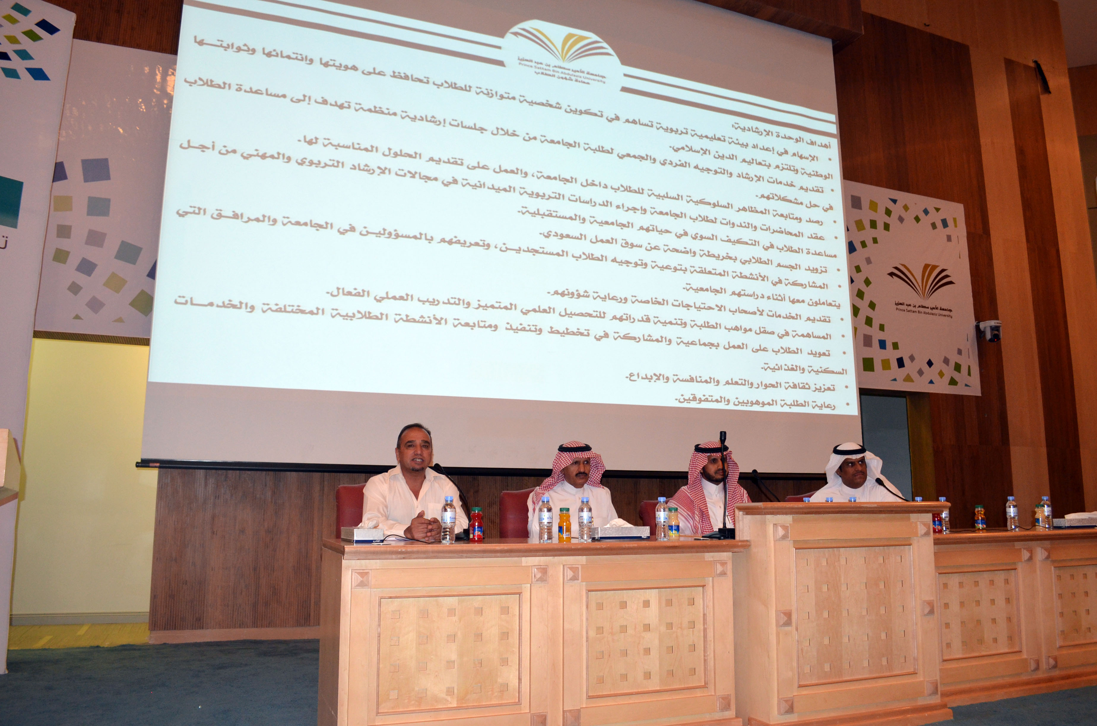 عقب ذلك تحدث الأستاذ نبيل الهزاع عن كل ما يتعلق بالمكافآت وآلية استلامها، ومن ثم عرض فلم وثائقي عن أبرز الخدمات والأنشطة الطلابية التي تم انجازها العام الماضي، بعد ذلك قدم مساعد العميد للأنشطة الطلابية الأستاذ جمال الحمداء شرح عن الأنشطة الطلابية وكيفية التسجيل فيها، واختتمت مشاركة العمادة بمحور الإرشاد الطلابي الذي قدمه الدكتور أحمد حرارشة.