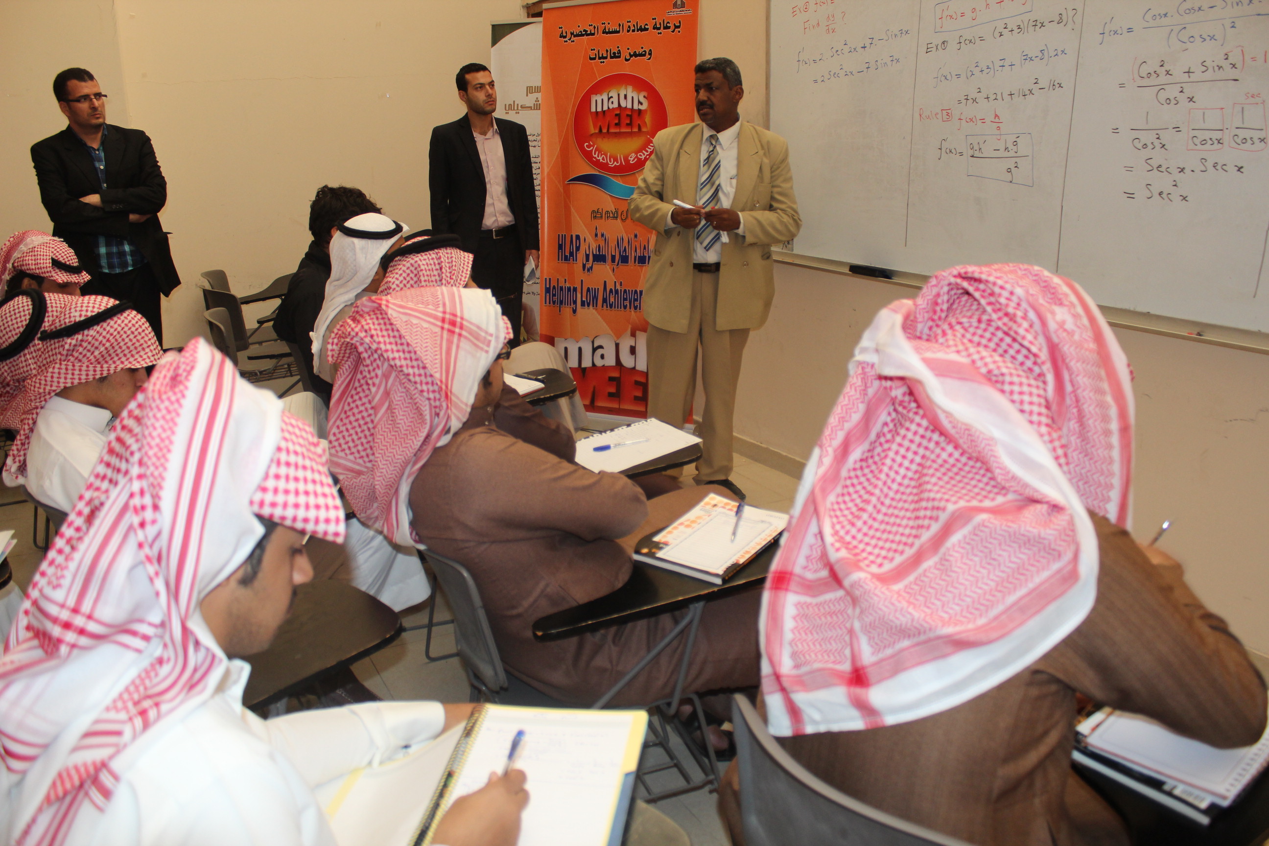 وقد قام منسق شعبة الرياضيات بالإشراف المباشر على آلية تنفيذ المحاضرات للطلاب المتعثرين وبحضور رئيس قسم العلوم الأساسية بالعمادة ورئيس وحدة الارشاد الأكاديمي، ويقوم على تقديم الدروس الإضافية للطلاب المتعثرين نخبة من مدرسي الرياضيات بقسم العلوم الأساسية في العمادة .