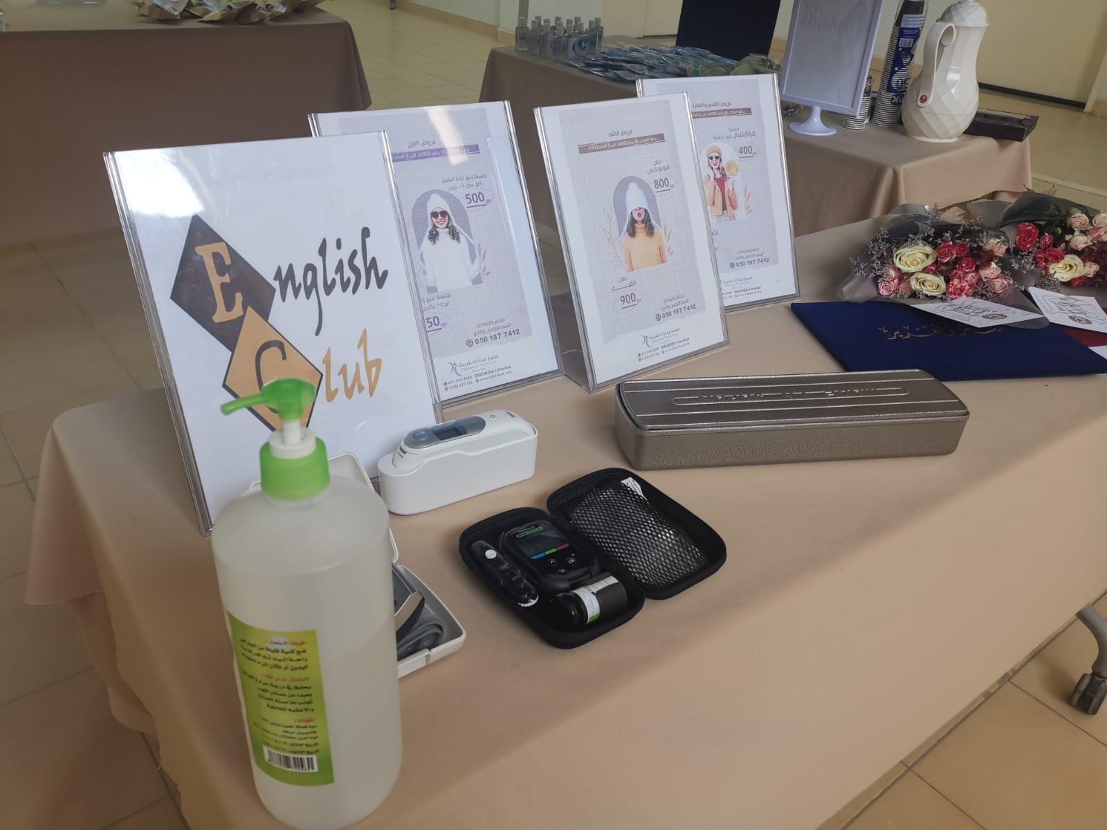 نظّم المجلس الطلابي بالتعاون مع نادي اللغة الانجليزية بعمادة السنة التحضيرية- قسم الطالبات حملة توعوية بعنوان (مخيم طبي) وبإشراف الأستاذتين سهاد الهويدي و أورجمان نشأت، وذلك يوم الأربعاء الموافق 1443/8/20هـ. حيث تمت استضافة مجمع عيادات طبيبك في مدينة الخرج بالعمادة بهدف نشر التوعية بين أفراد المجتمع المحلي تأكيداً لشعار الشراكة المجتمعية لمكافحة انتشار الجائحة منذ بدايتها عام 2019 واستمرارها حتى يومنا هذا. وركز الفريق الطبي في مجمع عيادات طبيبك للجمهور أهمية التوعية الخاصة بالإجراءات الاحترازية للحد من انتشار فايروس كورونا وسلالاته المتحورة، وذلك بحضور الممرضة خلود عرض ومديرة العلاقات العامة منيرة الدوسري، حيث قدمتا نصائح عديدة لمواجهة فايروس كورونا والحد من انتشاره، كما تضمن المخيم الطبي العديد من الأركان المختلفة، قام خلاله إدارة الحملة بتوزيع بروشورات وعرض صور ولوحات توعوية نالت إعجاب الحضور.