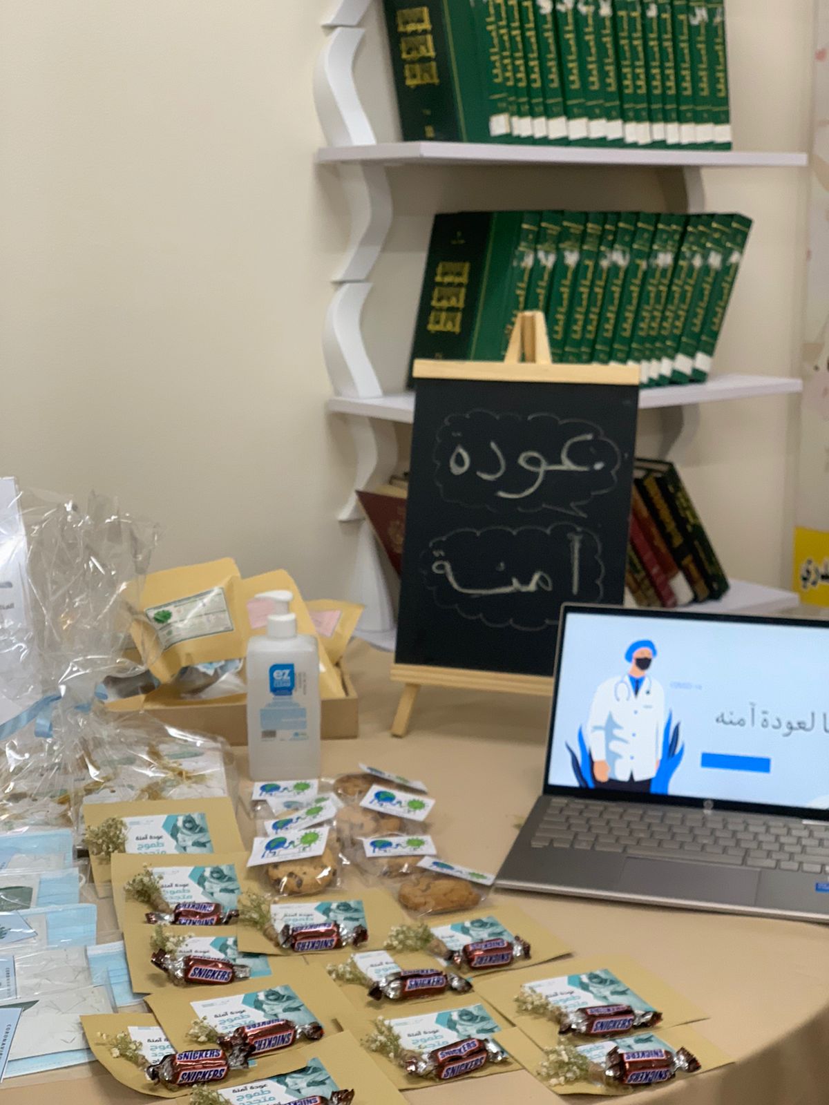 نظّم المجلس الطلابي بالتعاون مع نادي اللغة الانجليزية بعمادة السنة التحضيرية- قسم الطالبات حملة توعوية بعنوان (عودة آمنة) وبإشراف الأستاذتين سهاد الهويدي و أورجمان نشأت، وذلك يوم الاثنين الموافق1443/7/27هـ. حيث تمت زيارة المدرسة الثانوية السابعة عشر في مدينة الخرج بهدف نشر التوعية بين أفراد المجتمع المحلي تأكيداً لشعار الشراكة المجتمعية لمكافحة انتشار الجائحة منذ بدايتها عام 2019 واستمرارها حتى يومنا هذا. وركزت طالبات المجلس الطلابي ( رهام القحطاني وأمل بريك و لينا العنزي وداليا العنبر) على أهمية التوعية الخاصة بالإجراءات الاحترازية للحد من انتشار فايروس كورونا وسلالاته المتحورة، وذلك عبر عرض توضيحي ألقته الطالبتين منار العليمي و جنان العنزي ، حيث قدمتا نصائح عديدة لمواجهة فايروس كورونا والحد من انتشاره، كما تضمنت الفعالية العديد من الأركان المختلفة، وتم توزيع بروشورات وعرض صور ولوحات توعوية نالت إعجاب الحضور.