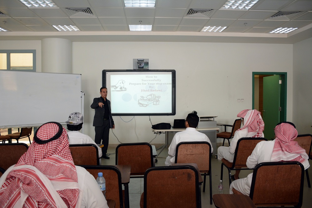 بهدف تعريف الطلاب على كيفية التعامل مع اختبار STEP نظمت عمادة السنة التحضيرية ممثلة بوحدة الأنشطة الطلابية وبالتعاون مع قسم اللغة الإنجليزية محاضرة بعنوان: "كيف تتعامل مع اختبار STEP " يوم الأربعاء: 4/7/1439هـ قدمها الأستاذ: جهاد محمد البدوي .