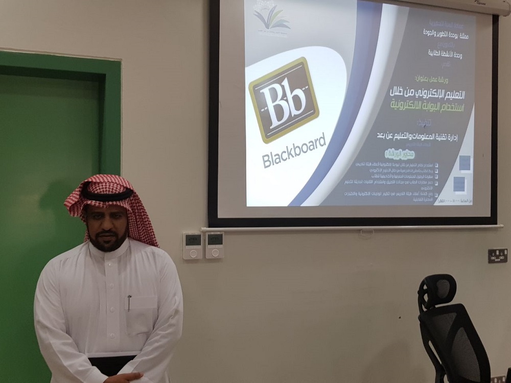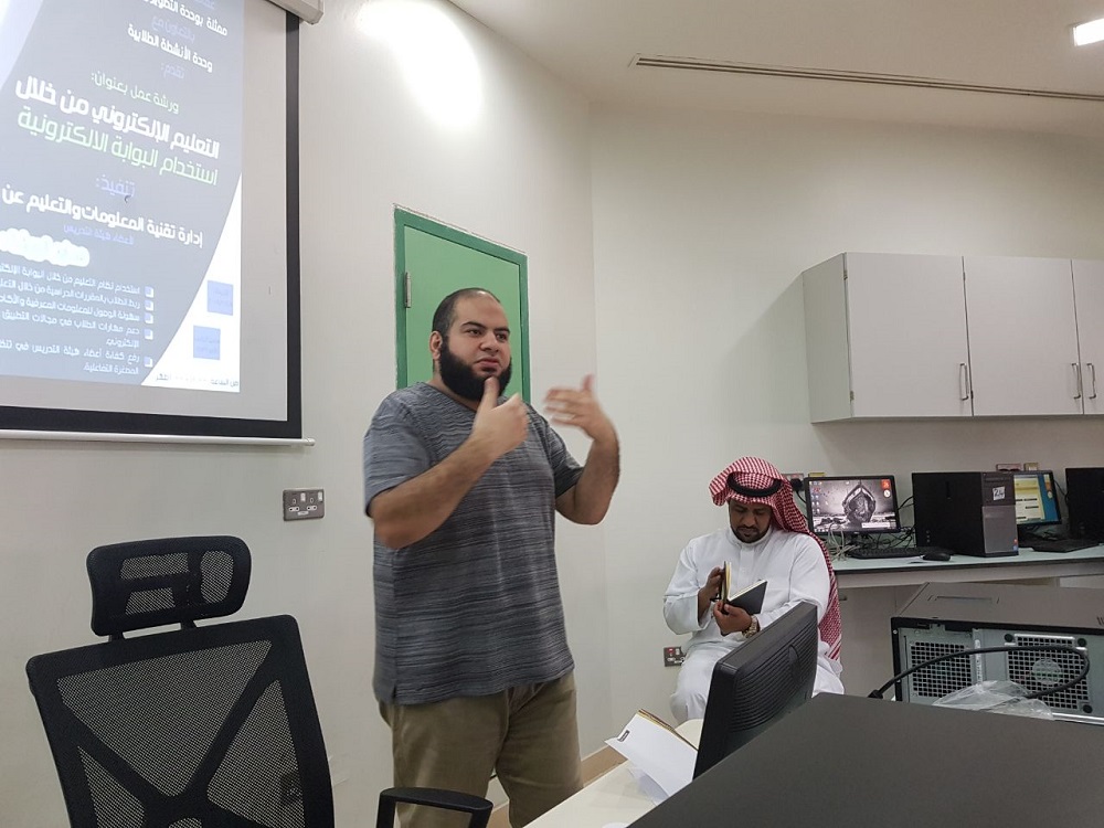 بهدف تعريف أعضاء هيئة التدريس بنظام إدارة التعلّم و المقررات الدراسية ، ورفع كفاءة العملية التعليمية في العمادة؛ نظمت العمادة ممثلة بوحدة الأنشطة الطلابية بالتعاون مع وحدة التطوير والجودة ورشة عمل حملت عنوان " التعليم الإلكتروني من خلال استخدام البوابة الإلكترونية " يوم الأربعاء 12 / 6 / 1439هـ لأعضاء هيئة التدريس ، قام بتنفيذها كادر من إدارة تقنية المعلومات والتعليم عن بعد في الجامعة . حيث تناولت الورشة مجموعة من المحاور تمثلت في استخدام نظام التعليم من خلال البوابة الإلكترونية لأعضاء هيئة التدريس.و ربط الطلاب بالمقررات الدراسية من خلال التعليم الإلكتروني. كذلك بينت سهولة الوصول للمعلومات المعرفية والأكاديمية للطلاب. وكيفية دعم مهارات الطلاب في مجالات التطبيق واستخدام التقنيات الحديثة للتعليم الإلكتروني. وآلية رفع كفاءة أعضاء هيئة التدريس في تنظيم الواجبات الإلكترونية والاختبارات المصغرة التفاعلية.. و تخلل الورشة تطبيق عملي من قبل المشاركين أثناء الورشة..