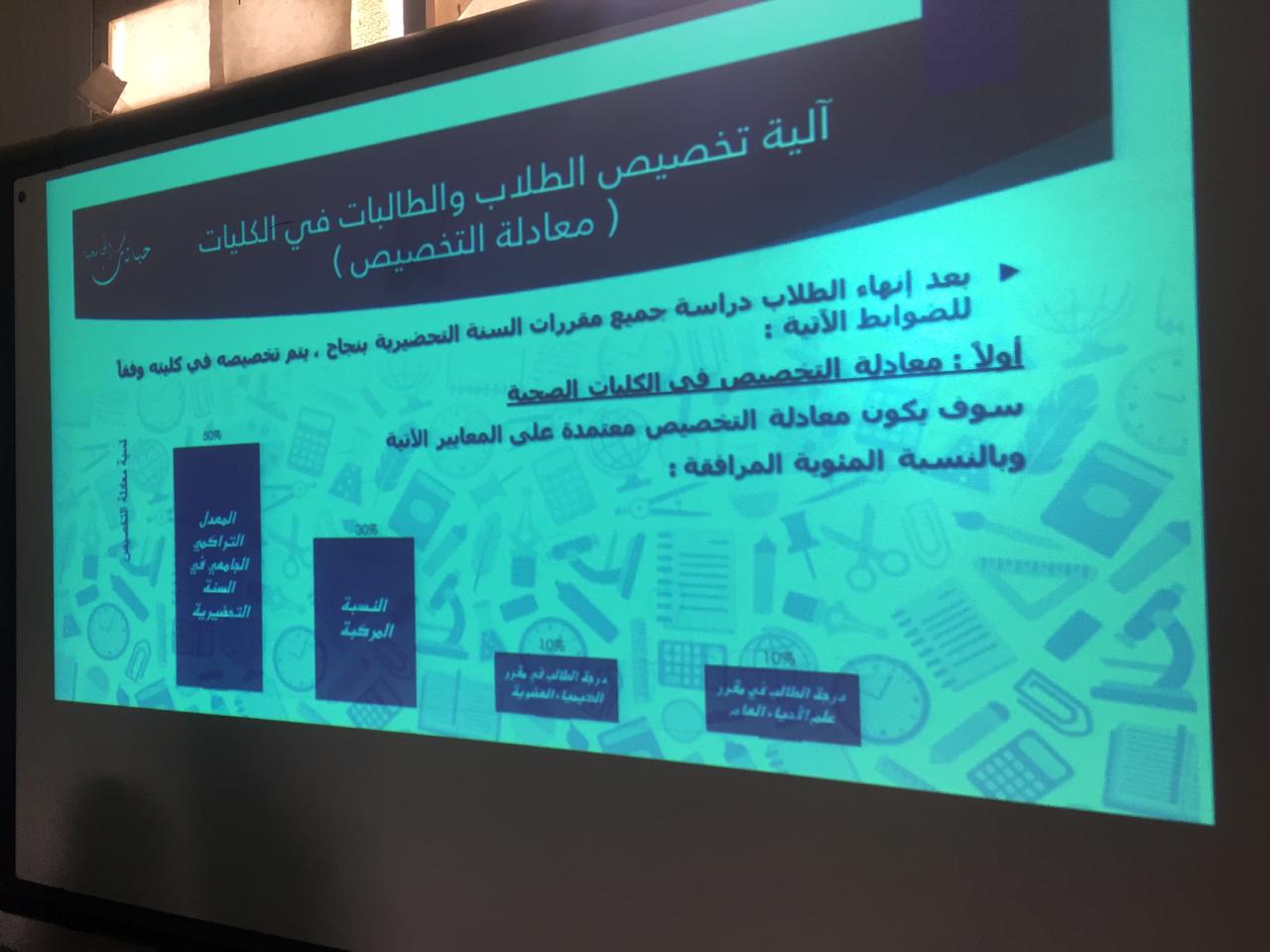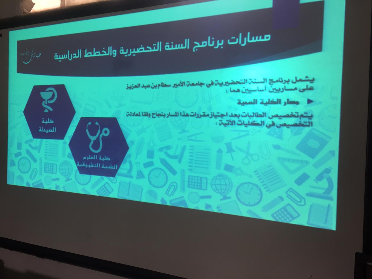 قام وفد من عمادة السنة التحضيرية – شطر الطالبات ممثل بطالبات المجلس الاستشاري الطلابي وبعض من طالبات العمادة (أصدقاء المجلس) بزيارة المدرسة الثانوية السادسة عشر بالخرج يوم الخميس الموافق 7-7-1440هـ . حيث قام الطالبات بإلقاء برنامج تعريفي عن جامعة الأمير سطام بن عبدالعزيز بالخرج حيث ابتدأ البرنامج بتعريف رؤية ورسالة الجامعة وكذلك نظام الدراسة في السنة التحضيرية والخطة المقررة وآلية التخصيص ثم تم شرح للوحدات المساندة للعمادة ومنها وحدة شؤون الطلاب والإرشاد الأكاديمي وغيرها, كما تضمن على نقاط مهمة للطالبات كالغياب والحرمان وحالات قبول الأعذار . ثم اختتم البرنامج بإلقاء بعض النصائح المهمة لطالبات الثانوية والرد على بعض الاستفسارات منهن، وحظي البرنامج باستحسان طالبات الثانوية حيثُ أبدوا اعجابهن به وبالفائدة المكتسبة منه .