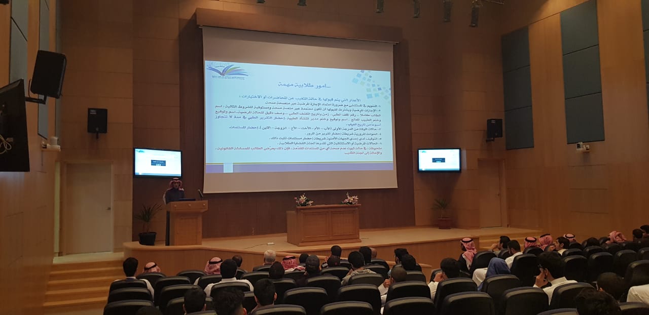 كما قام بتقديم بعض النصائح والتوجيهات كضرورة الاستفادة من جميع البرامج المقدمة من العمادة والتي تصب في مصلحة الطالب كالدروس الإثرائية ، وكذلك الاستفادة من الخدمات التي تقدمها العمادة كالساعات المكتبية وخدمات وحدة الإرشاد. وأختتم اللقاء بفتح باب الأسئلة التي أثرت اللقاء وأخذت بعين الإعتبار