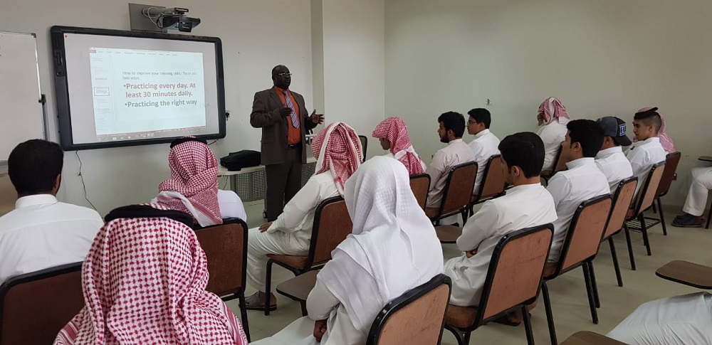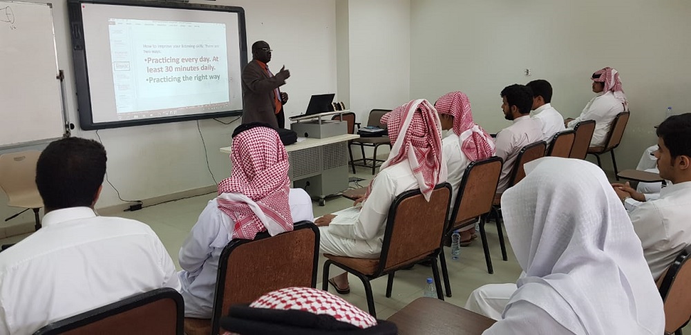 نظمت عمادة السنة التحضيرية ممثلة بوحدة الأنشطة الطلابية بالتعاون مع وحدة اللغة الإنجليزية في العمادة دورة تحت عنوان: "Improving Students' Listening Skills" تطوير مهارات الإستماع لدى الطلاب مقدمة باللغة الإنجليزية بهدف تعريف الطلاب على أهم أساليب وطرق تنمية الاستماع ، و التي بدورها ستزيد مهارتي التحدث و القراءة على حدٍ سواء، وذلك يوم الخميس : 23/2/1440هـ قدمها عضو هيئة التدريس بالعمادة الدكتور عمار آدم محمد.