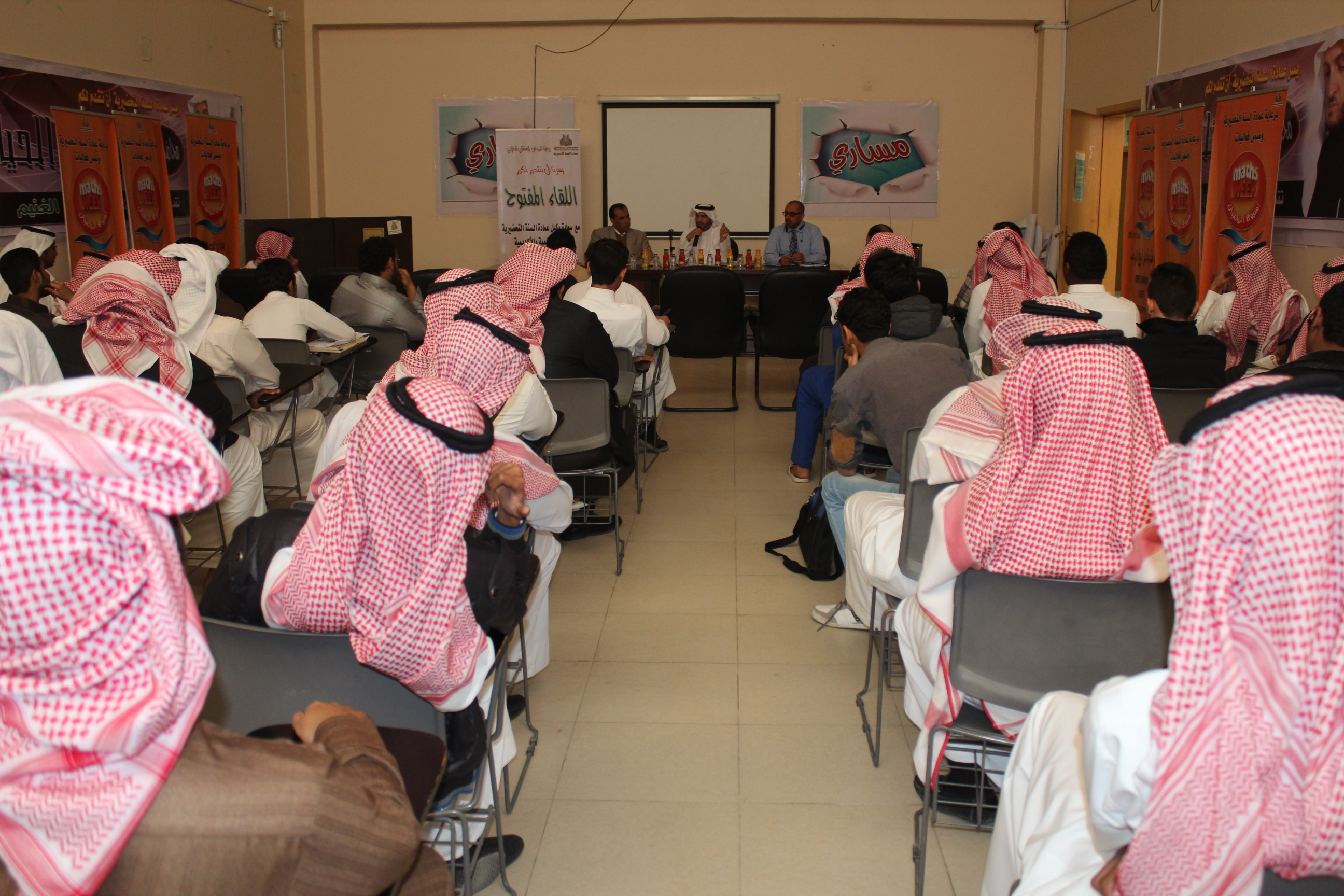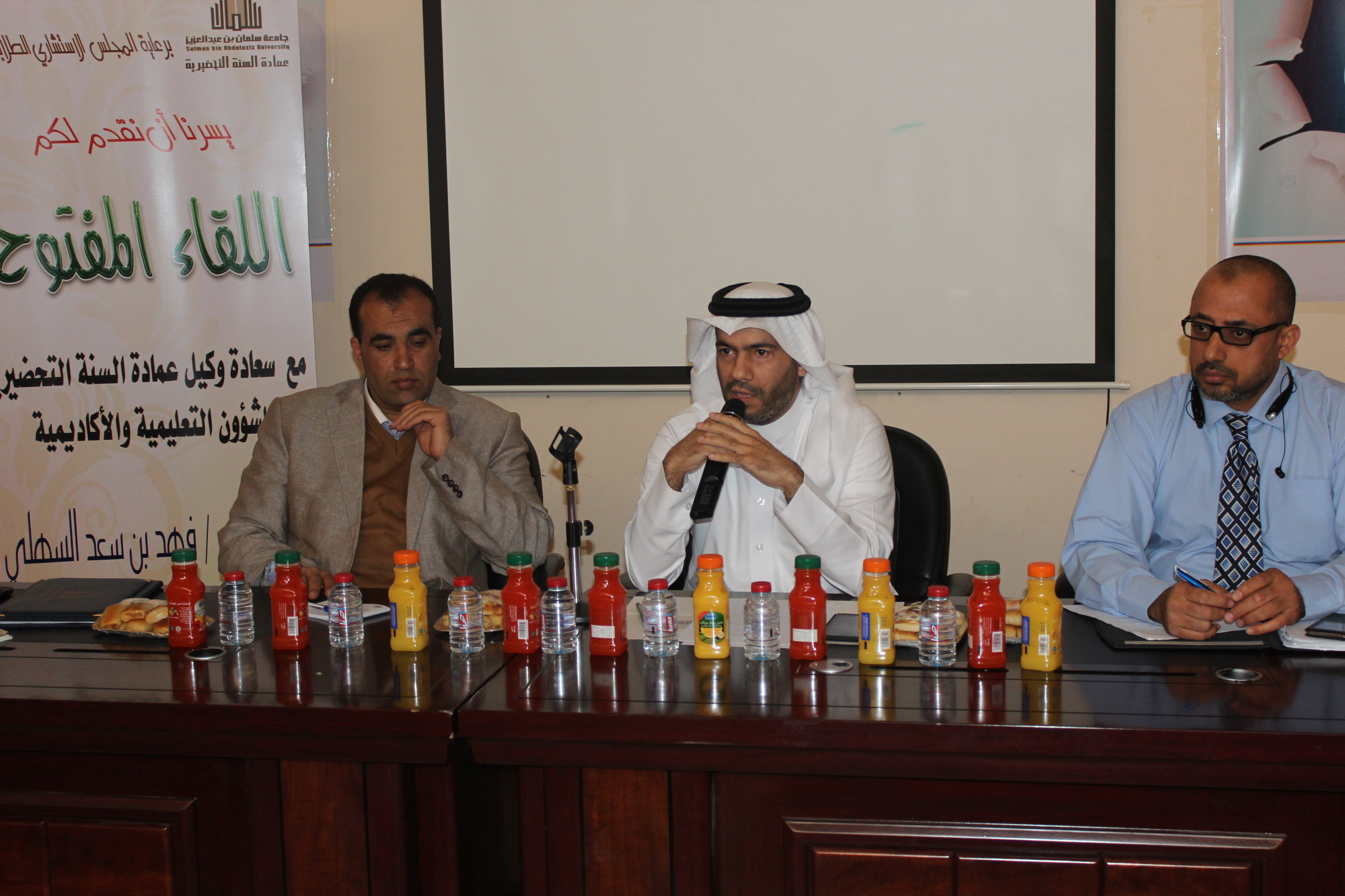 أقامت عمادة السنة التحضيرية وبالتنسيق ما بين وحدة الأنشطة والمجلس الطلابي الاستشاري، لقاءً مفتوحا بطلابها بحضور وكيل العمادة للشؤون التعليمية والأكاديمية الدكتور فهد بن سعد السهلي، ورؤساء الأقسام.