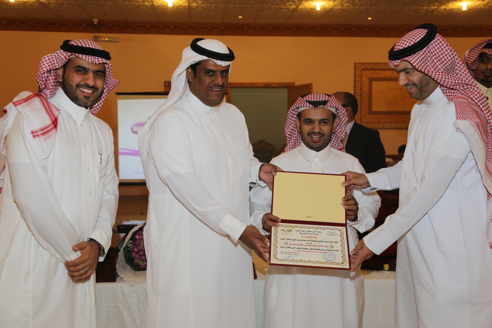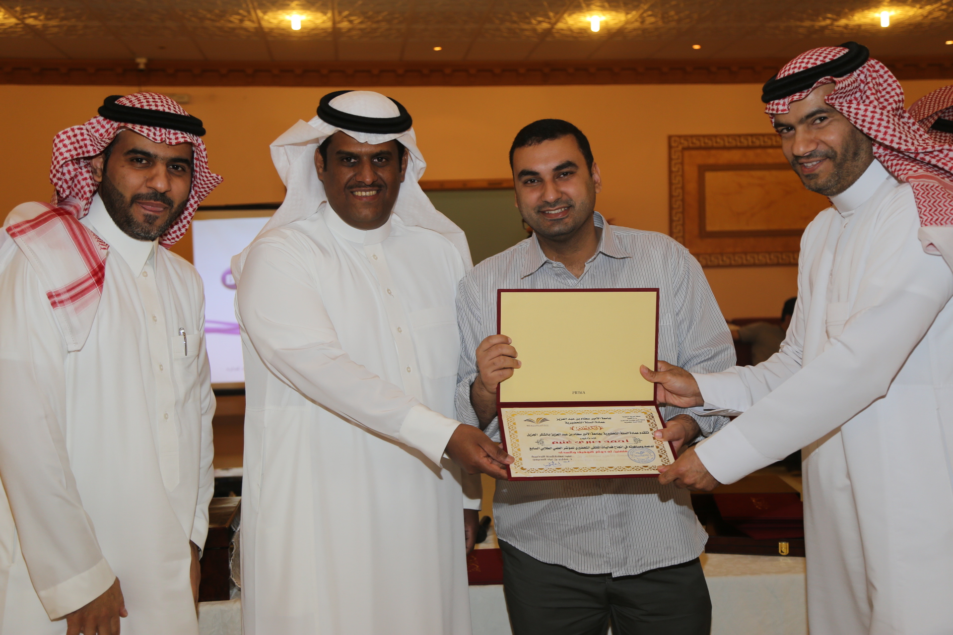في أجواء أخوية أقامت عمادة السنة التحضيرية اللقاء الثاني لمنسوبيها، وشمل اللقاء تكريم لوكيل العمادة السابق الدكتور فهد بن سعد السهلي والذي كان له دور فاعل في تطوير عمادة السنة التحضيرية، وتم تكريم المساهمين في نجاح الملتقى التحضيري للمؤتمر العلمي الطلابي السابع، وتكريم لفريق وحدة الأنشطة الطلابية بالعمادة.