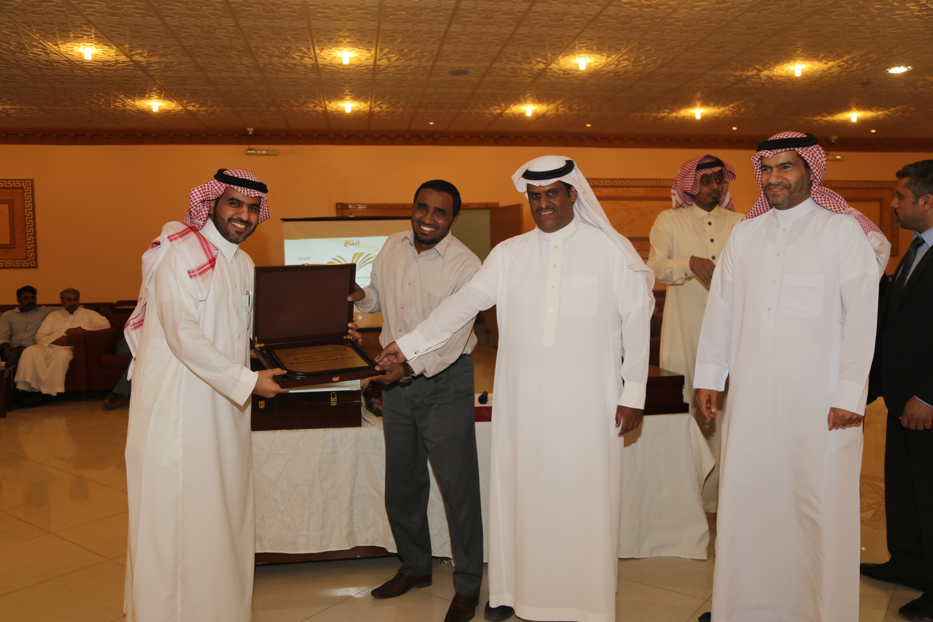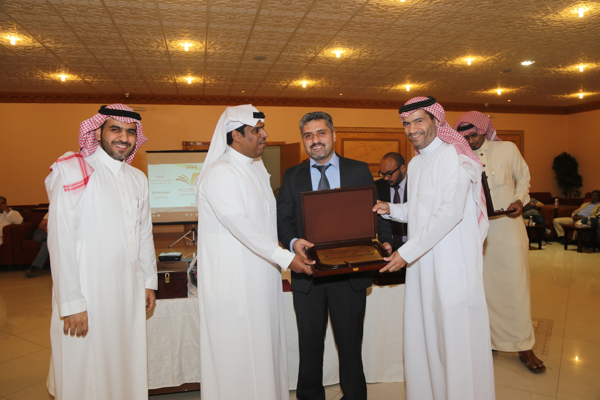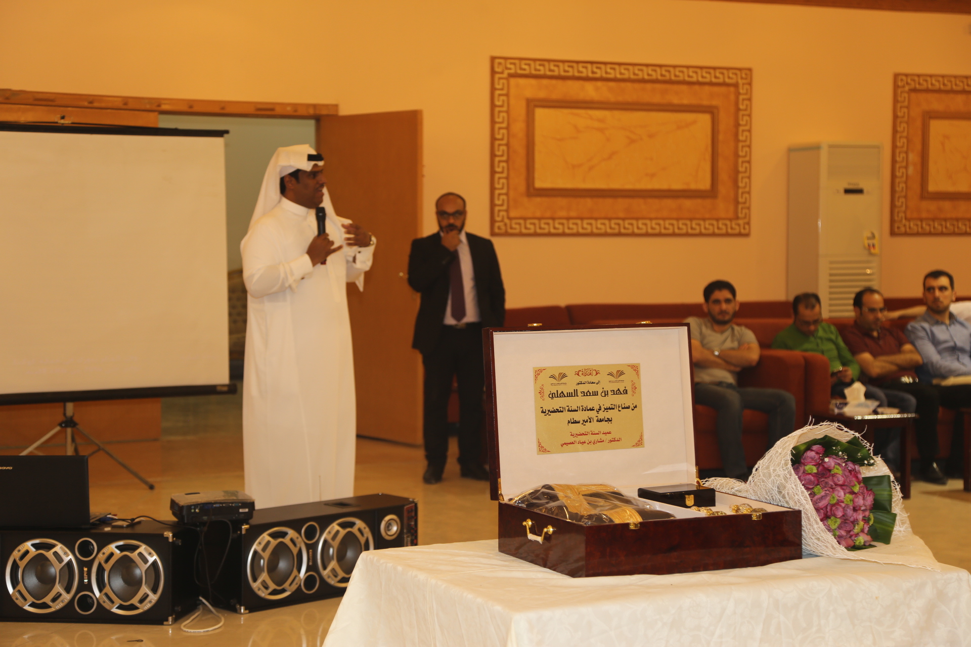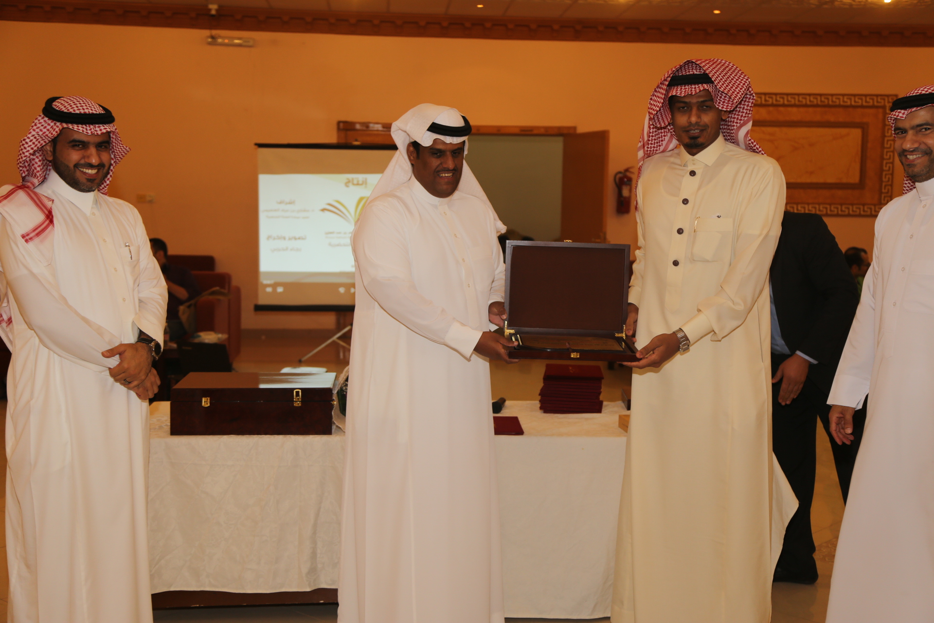 بعد ذلك تم تقديم عرض مرئي يلخص أبرز إنجازات وحدة الأنشطة الطلابية خلال العام الدراسي وتبع ذلك تكريم لمديري مشروع السنة التحضيرية الأستاذ محمد المطرفي والدكتور حسين مقدادي، وتكريم لرؤساء الأقسام في العمادة، وتكريم للجنة المنظمة للملتقى التحضيري والذي أقيم في العمادة ضمن فعاليات المؤتمر العلمي، وتكريم لفريق وحدة الأنشطة الطلابية الدكتور مسفر الهرش والأستاذ فهد محمد بن حسين والأستاذ صدام الدومي، ومن الجدير بالذكر أن العمادة حصلت على خمس عشر جائزة في الملتقى التحضيري للمؤتمر العلمي، وحصلت على جائزة التميز والمركز الأول في الأنشطة الطلابية، وفي مداخلة للدكتور العصيمي شكر فيها فريق عمل وحدة الأنشطة الطلابية لما بذلوه من جهد متميز في تفعيل الأنشطة الطلابية، واصلا شكره لجميع منسوبي العمادة، وأكد على أن النجاح لا يكون بشخص وإنما بتعاون وبجهود الجميع.