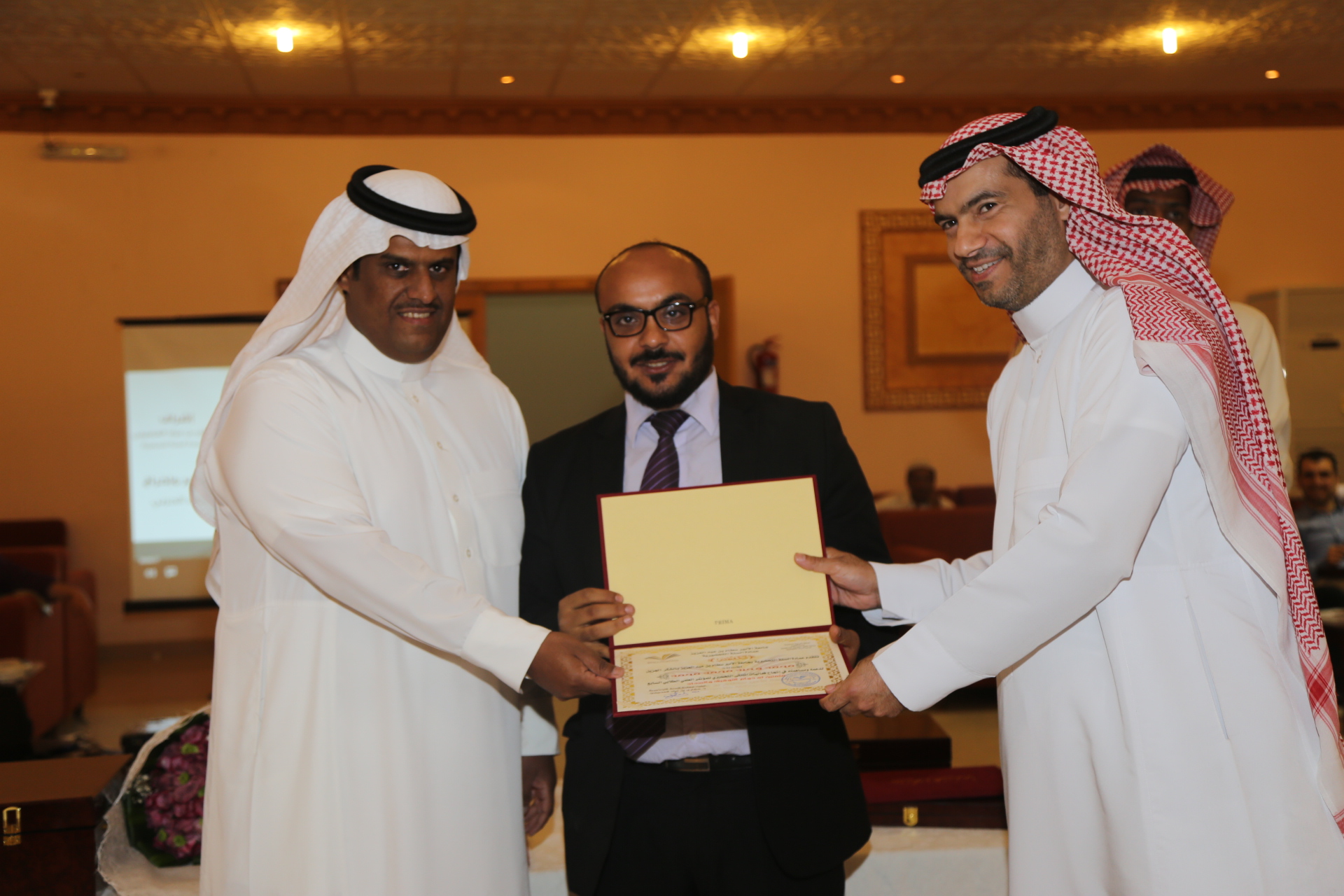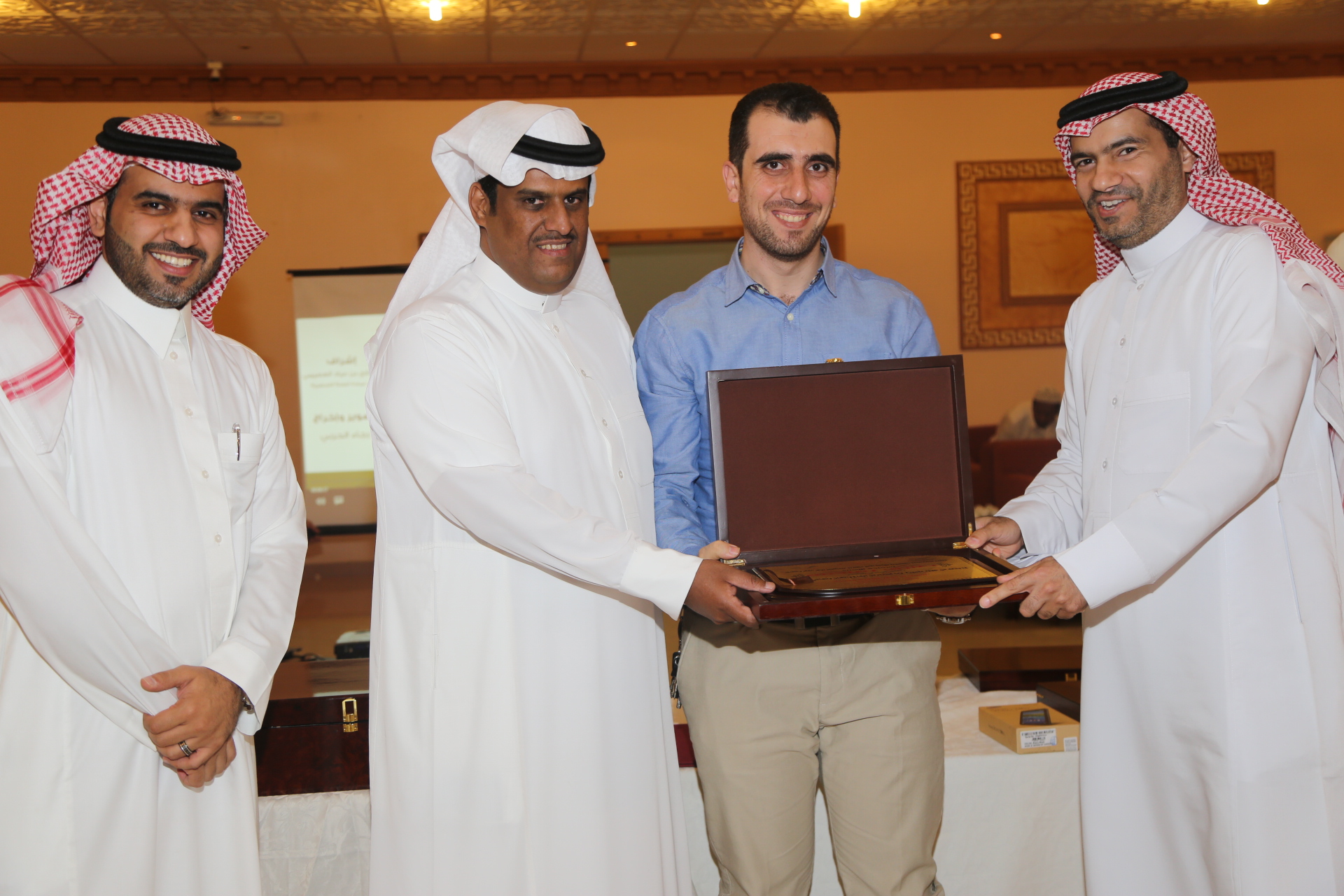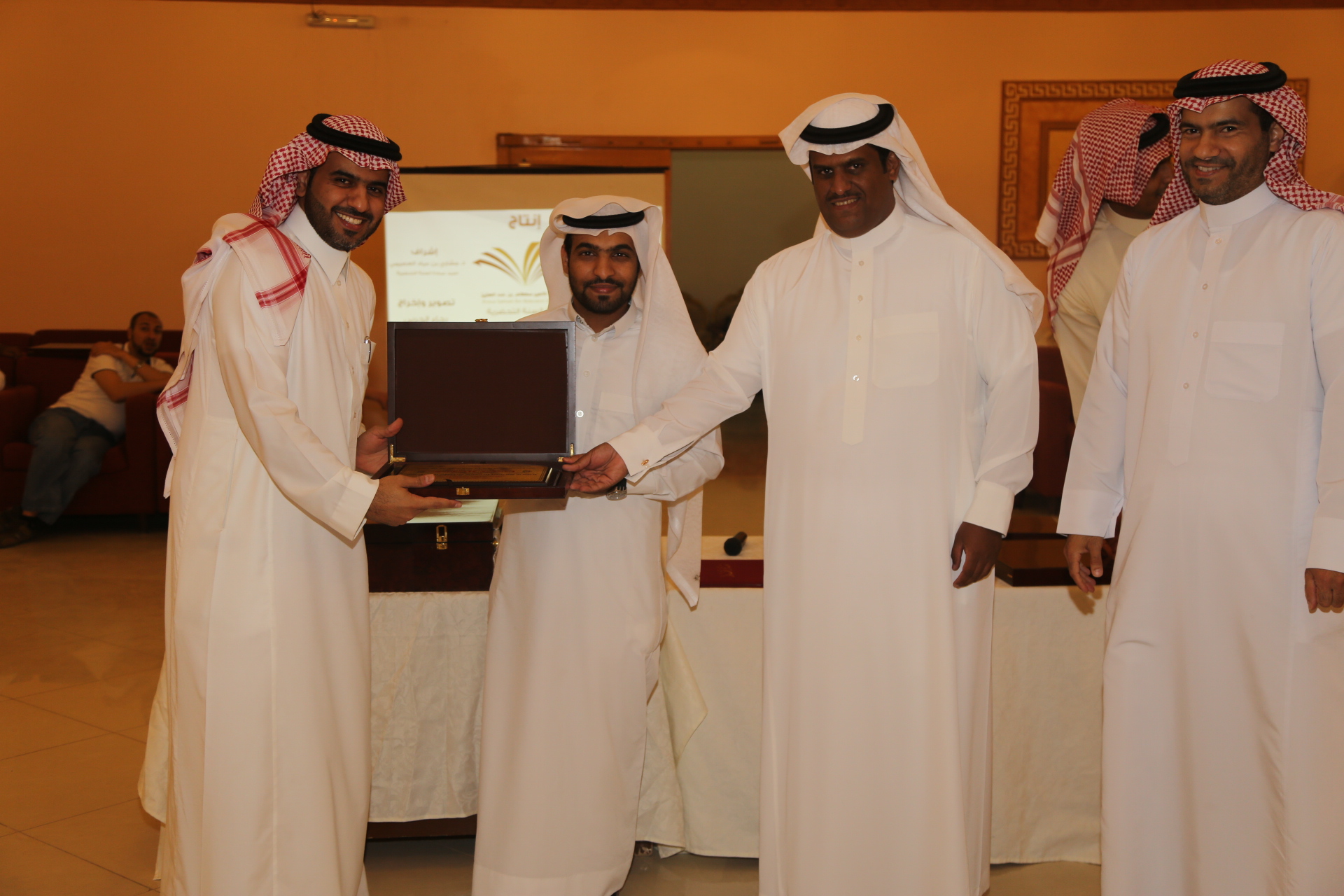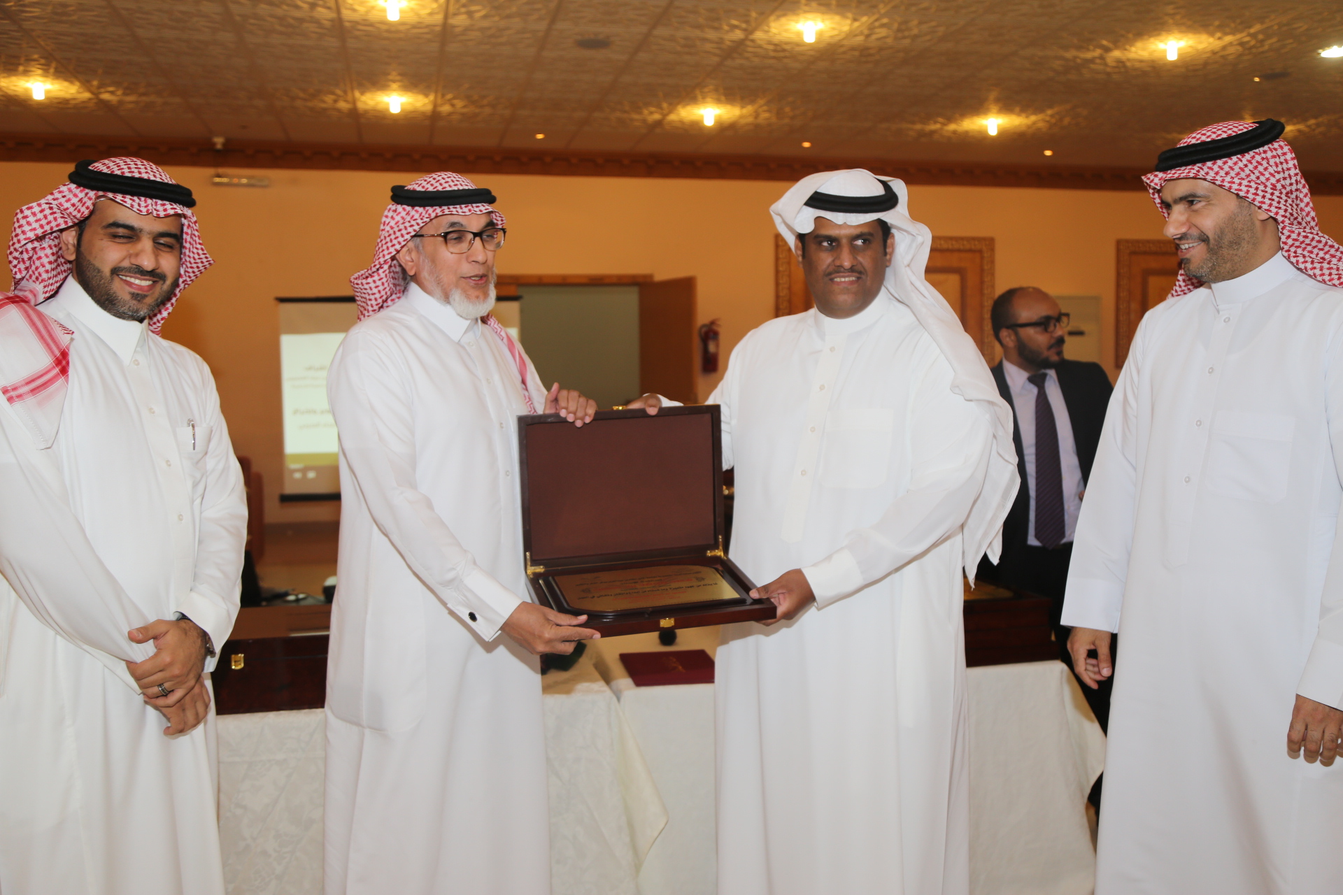 بعد ذلك تم تقديم عرض مرئي يلخص أبرز إنجازات وحدة الأنشطة الطلابية خلال العام الدراسي وتبع ذلك تكريم لمديري مشروع السنة التحضيرية الأستاذ محمد المطرفي والدكتور حسين مقدادي، وتكريم لرؤساء الأقسام في العمادة، وتكريم للجنة المنظمة للملتقى التحضيري والذي أقيم في العمادة ضمن فعاليات المؤتمر العلمي، وتكريم لفريق وحدة الأنشطة الطلابية الدكتور مسفر الهرش والأستاذ فهد محمد بن حسين والأستاذ صدام الدومي، ومن الجدير بالذكر أن العمادة حصلت على خمس عشر جائزة في الملتقى التحضيري للمؤتمر العلمي، وحصلت على جائزة التميز والمركز الأول في الأنشطة الطلابية، وفي مداخلة للدكتور العصيمي شكر فيها فريق عمل وحدة الأنشطة الطلابية لما بذلوه من جهد متميز في تفعيل الأنشطة الطلابية، واصلا شكره لجميع منسوبي العمادة، وأكد على أن النجاح لا يكون بشخص وإنما بتعاون وبجهود الجميع.