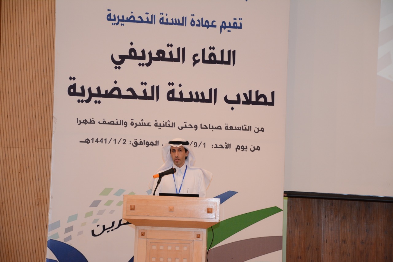 كما قدم الدكتور محزري وكيل عمادة السنة التحضيرية للشؤون التعليمية والأكاديمية عرضا مرئيا تحدث فيه عن نشأة السنة التحضيرية ورؤيتها ورسالتها وأهدافها التي تطمح لتحقيقها، وكذلك الخدمات والبرامج التي تقدم للطالب من شؤون الطلاب والأنشطة والأندية الطلابية. و تحدث عن التعليمات والتوجيهات اللازمة التي يحتاجها الطالب في مسيرته التعليمية وأكد على أهمية أخذ المعلومات من المصادر الموثوقة .