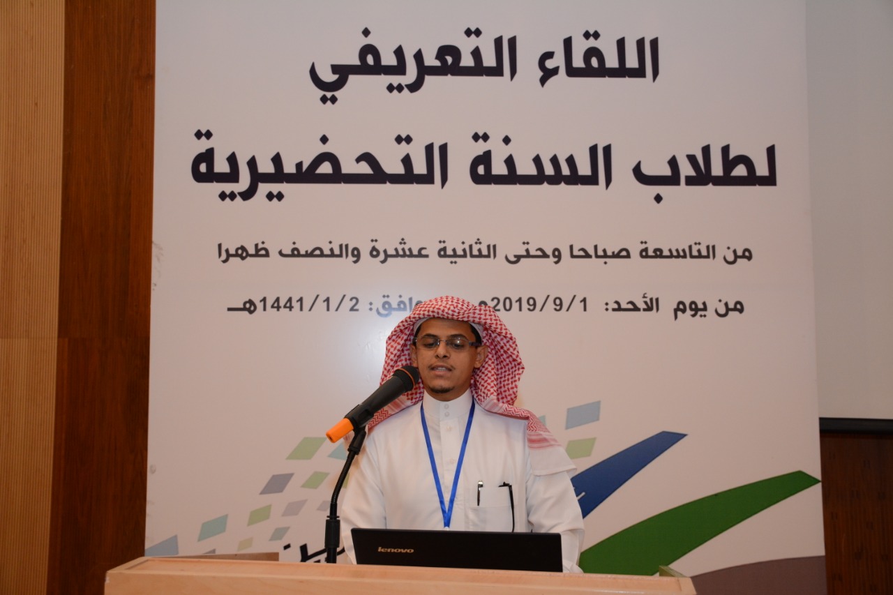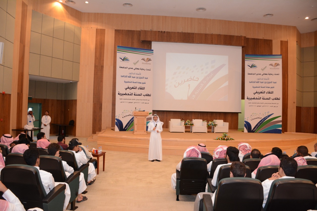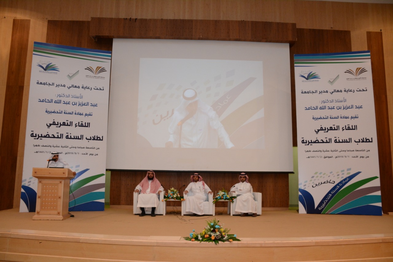 برعاية معالي مدير الجامعة الأستاذ الدكتور عبدالعزيز الحامد وبحضور وكيل الجامعة للشؤون التعليمية والأكاديمية الدكتور مشاري بن عياد العصيمي وعميد عمادة السنة التحضيرية المكلّف الدكتور فهد بن شهيل العلوي ، ووكيل العمادة للشؤون التعليمية والأكاديمية المكلّف الدكتور محمد بن عبده محزري أقامت جامعة الأمير سطام بن عبد العزيز ممثلة بعمادة السنة التحضيرية اليوم الأحد : 1/9/2019م – 2/1/1441هـ اللقاء التعريفي لطلاب وطالبات السنة التحضيرية ، وذلك في مسرح المدينة الجامعية بالجامعة .
