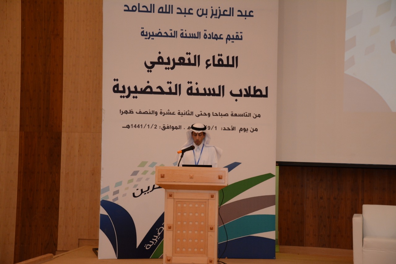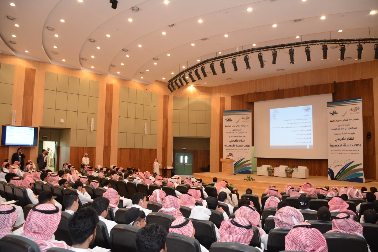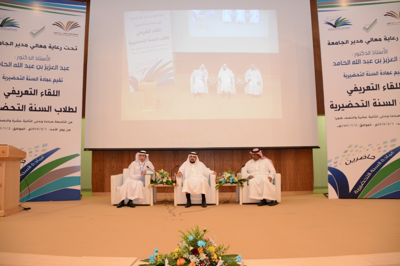 برعاية معالي مدير الجامعة الأستاذ الدكتور عبدالعزيز الحامد وبحضور وكيل الجامعة للشؤون التعليمية والأكاديمية الدكتور مشاري بن عياد العصيمي وعميد عمادة السنة التحضيرية المكلّف الدكتور فهد بن شهيل العلوي ، ووكيل العمادة للشؤون التعليمية والأكاديمية المكلّف الدكتور محمد بن عبده محزري أقامت جامعة الأمير سطام بن عبد العزيز ممثلة بعمادة السنة التحضيرية اليوم الأحد : 1/9/2019م – 2/1/1441هـ اللقاء التعريفي لطلاب وطالبات السنة التحضيرية ، وذلك في مسرح المدينة الجامعية بالجامعة .