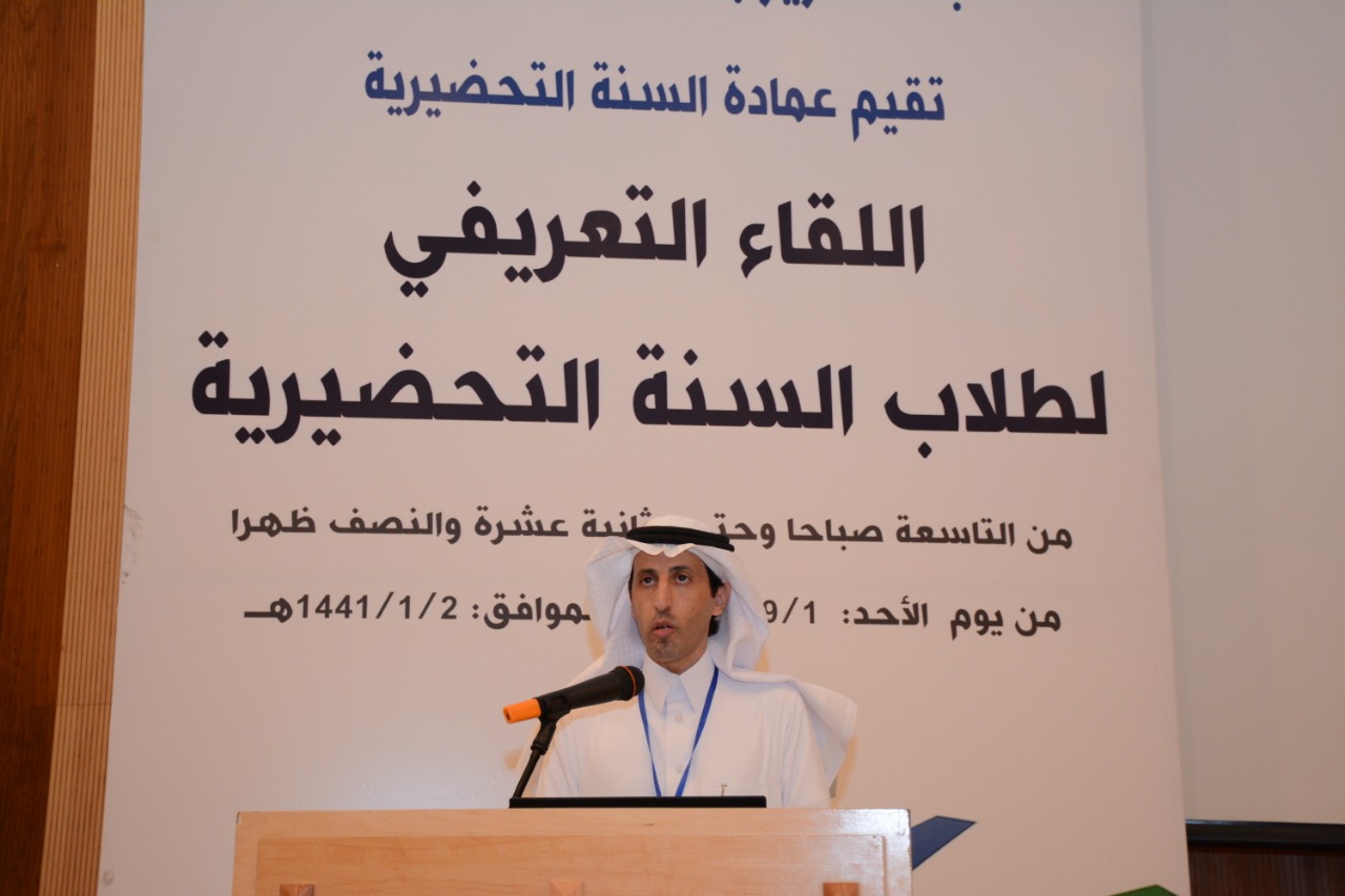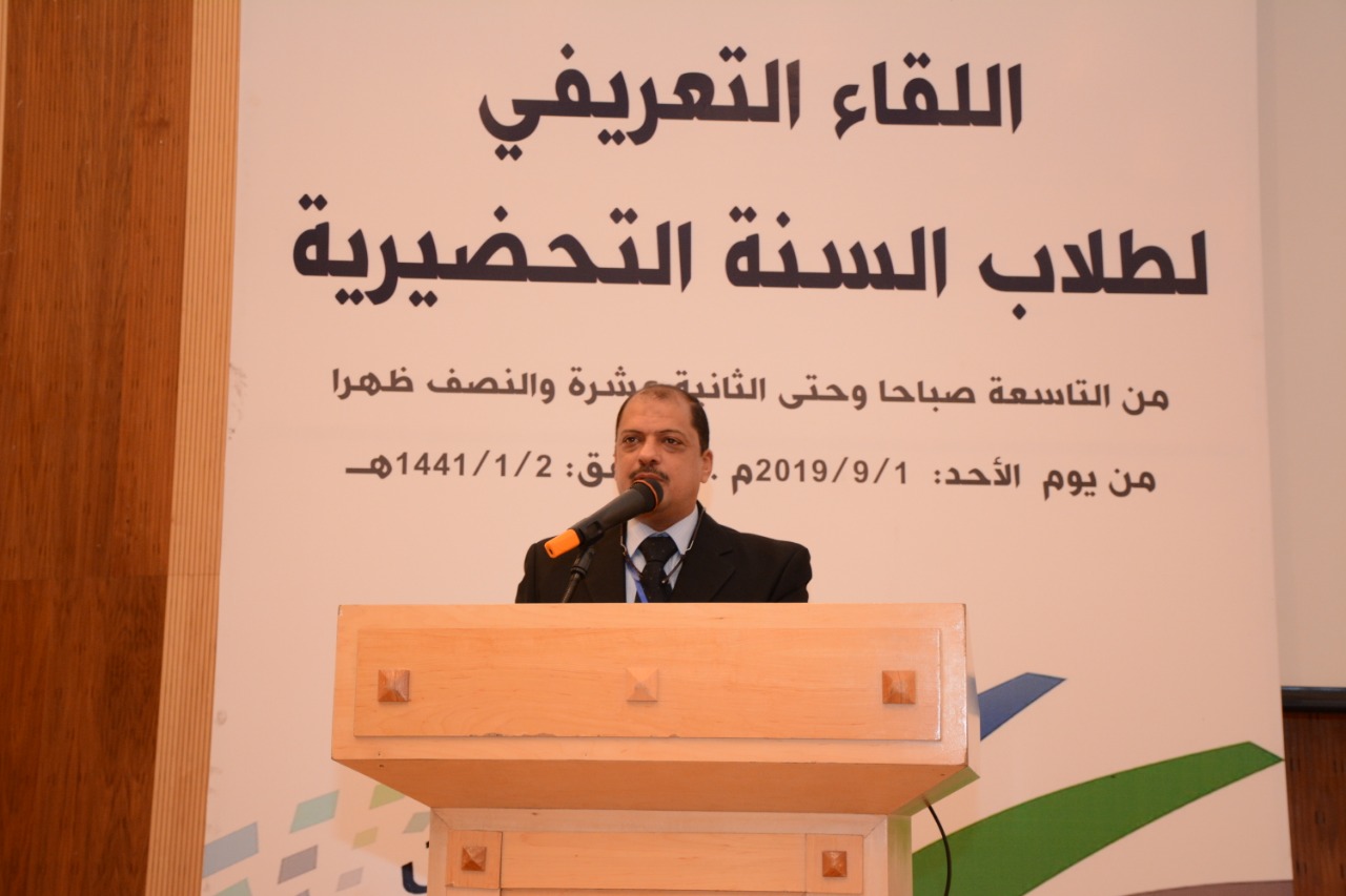 بعد ذلك جاءت كلمة الدكتور هشام عبد العزيز عبد الجبار - وكيل عمادة القبول والتسجيل بالجامعة- الذي رحب بالطلاب ثم قدم نبذة تعريفية عن الجامعة ، وأنظمتها ، و شروط النجاح في السنة التحضيرية، كما أشارإلى ودور العمادات في الجامعة، كما قدم لهم نصائح وتوجيهات في كيفية تسجيل المواد وغيرها من الأمور التي تعني الطالب.