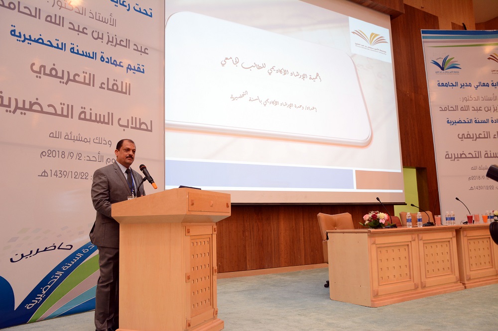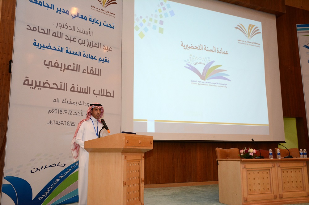 برعاية معالي مدير الجامعة الأستاذ الدكتور عبدالعزيز الحامد وبحضور وكيل الجامعة للشؤون التعليمية والأكاديمية الدكتور عبدالرحمن الخضيري وعميد عمادة السنة التحضيرية ووكلاء العمادة أقامت جامعة الأمير سطام ممثلة بعمادة السنة التحضيرية اليوم اللقاء التعريفي لطلاب وطالبات السنة التحضيرية اليوم الأحد : ٢٠١٨/٩/٢ وذلك في مسرح المدينة الجامعية وبدأت فعاليات الحفل بآيات من القرآن الكريم عقب ذلك ألقى عميد عمادة السنة التحضيرية الدكتور مشاري العصيمي أوضح خلالها دور عمادة السنة التحضيرية في توفير بيئة جاذبة علمية واجتماعية ومدى حرصها على تقديم التعليم النوعي للطالب وذلك بتدريب وجاهزية وكفاءة أعضاء هيئة التدريس بالعمادة لأهمية هذه المرحلة في تحديد مسار الطالب في حياته الجامعية ، كما أكد على أهمية الانضباط والمواظبة مع بداية العام الدراسي ، كما قدم الدكتور فهد العلوي وكيل عمادة السنة التحضيرية للشؤون التعليمية والأكاديمية عرضاً مرئياً تحدث فيه عن نشأت السنة التحضيرية وقيمها وأهدافها التي تطمح لتحقيقها، والخدمات والبرامج التي تقدم للطالب من شؤون الطلاب والأنشطة والأندية الطلابية. كما تحدث عن التعليمات والتوجيهات اللازمة التي يحتاجها الطالب في مسيرته التعليمية وأكد وشدد على أهمية أخذ المعلومات من المصادر الموثوقة . ومن ثم تم تقديم عرض للإرشاد الأكاديمي قدمه الدكتور حسام بدوي رئيس وحدة الإرشاد الأكاديمي في العمادة ، موضحا أن هناك فرق كبير بين المرحلة التعليمية في التعليم العام والمرحلة الجامعية في شتى المجالات . ثم ألقى معالي مدير الجامعة كلمة رحب فيها بالطلاب المستجدين وأكد على أهمية طلب العلم ومبيناً أن الجامعة وكل كلياتها ووحداتها وإداراتها مسخرة للجميع وأسست لخدمتهم ، مشدداً بأهمية الجد والاجتهاد في السنة التحضيرية كونها هي التي ستحدد مسار الطالب في التخصصات التي يرغبها ولا تزال الفرصة متاحة الآن ونحن في بداية العام الدراسي لتحديد المسار والعمل الجاد لتحقيق النجاح والتميز. بعد ذلك جاءت كلمة الدكتور عبدالعزيز الصقر عميد عمادة القبول والتسجيل بالجامعة رحب فيها بالطلاب ثم قدم: نبذة تعريفية عن الجامعة وكلياتها وتخصصاتها، شروط النجاح في السنة التحضيرية وسياسة الحضور والانصراف. وتحدث أيضا عن برنامج المنح التعليمية وماذا يتوقع الطالب من الجامعة وماذا تتوقع منه، ودور المجلس الطلابي بالجامعة والخدمات التي تقدمها العمادة. ودور جميع العمادات بالجامعة، وكيفية تسجيل المواد وغيرها مما له أهمية لدى الطالب. كما قدم لهم نصائح وتوجيهات