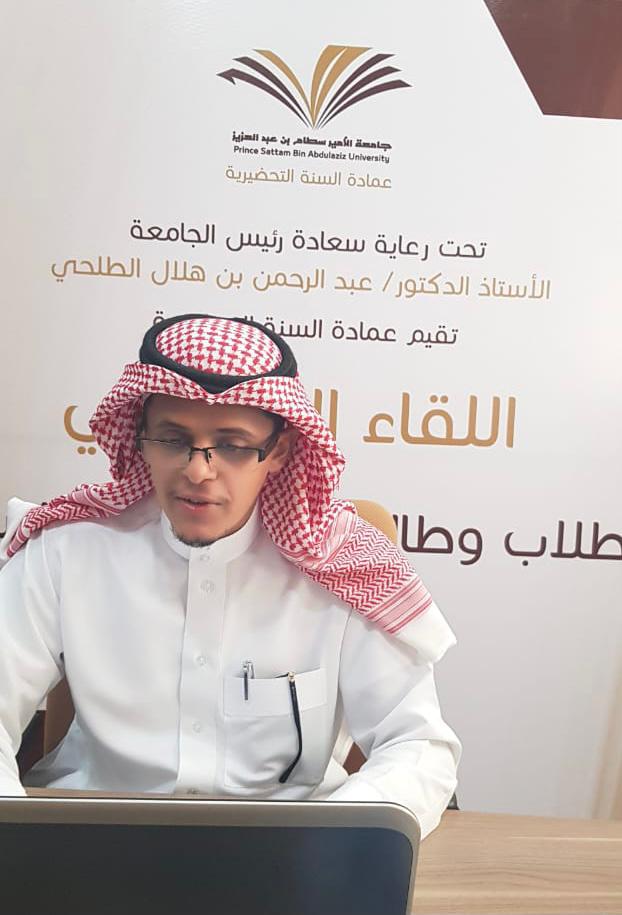 برعاية سعادة رئيس الجامعة الأستاذ الدكتور عبد الرحمن بن هلال الطلحي وبحضور وكيل الجامعة للشؤون التعليمية والأكاديمية الدكتور مشاري بن عياد العصيمي، و سعادةَ وكيلةِ الجامعة لشؤون الطالبات/ الدكتورة بشرى بنت أحمد الحماد وعميد عمادة السنة التحضيرية الدكتور فهد بن شهيل العلوي، ووكلاء العمادة ومنسوبيها، أقامت جامعة الأمير سطام بن عبد العزيز ممثلة بعمادة السنة التحضيرية اليوم الأربعاء: 17/ 1 /1443هـ اللقاء التعريفي لطلاب وطالبات السنة التحضيرية عن بعد.