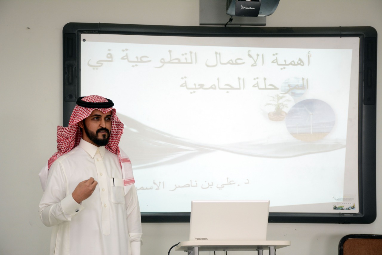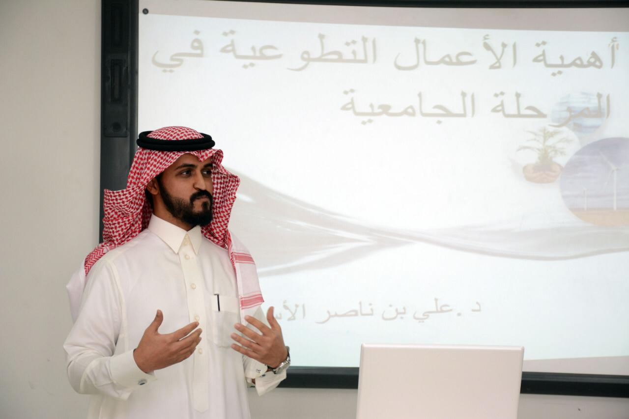 بتنظيم من نادي حاضرين في عمادة السنة التحضيرية عقدت اليوم الثلاثاء الموافق 26 / 3 / 1440هـ دورة تدريبية بعنوان ( أهمية الأعمال التطوعية في المرحلة الجامعية ) قدمها الدكتور علي بن ناصر الأسمري عضو هيئة التدريس في جامعة الأمير سطام والمشرف على مشروع معرفة بوكالة الجامعة للشؤون التعليمية والأكاديمية وذلك ضمن استعدادات عمادة السنة التحضيرية للمشاركة في المؤتمر العلمي الطلابي الثالث ، وتحقيقاً لرؤية المملكة 2030م في المجال التطوعي وزيادة أعداد المتطوعين والفرق التطوعية ومدى أهميتها ودورها في تنمية المجتمع