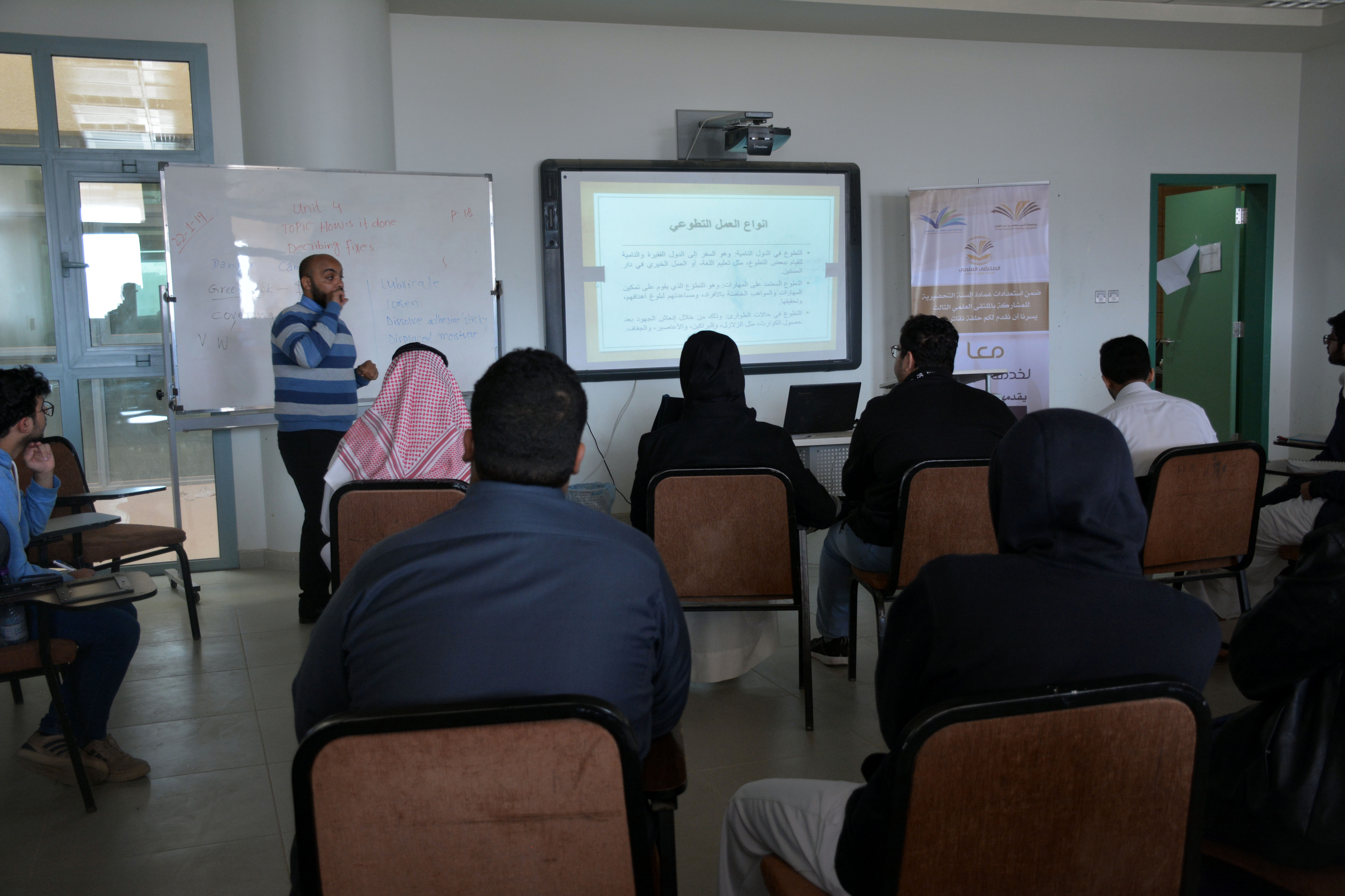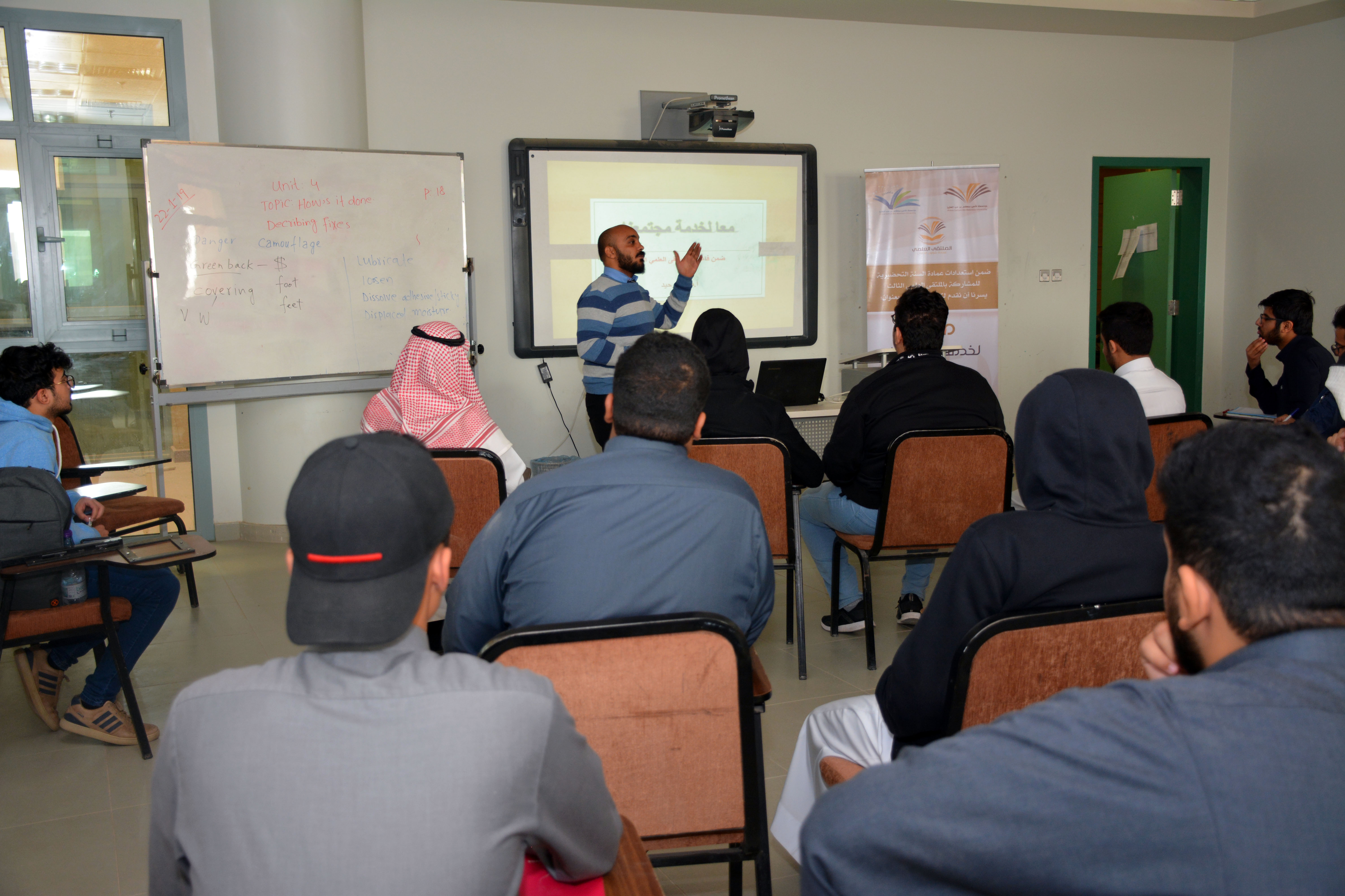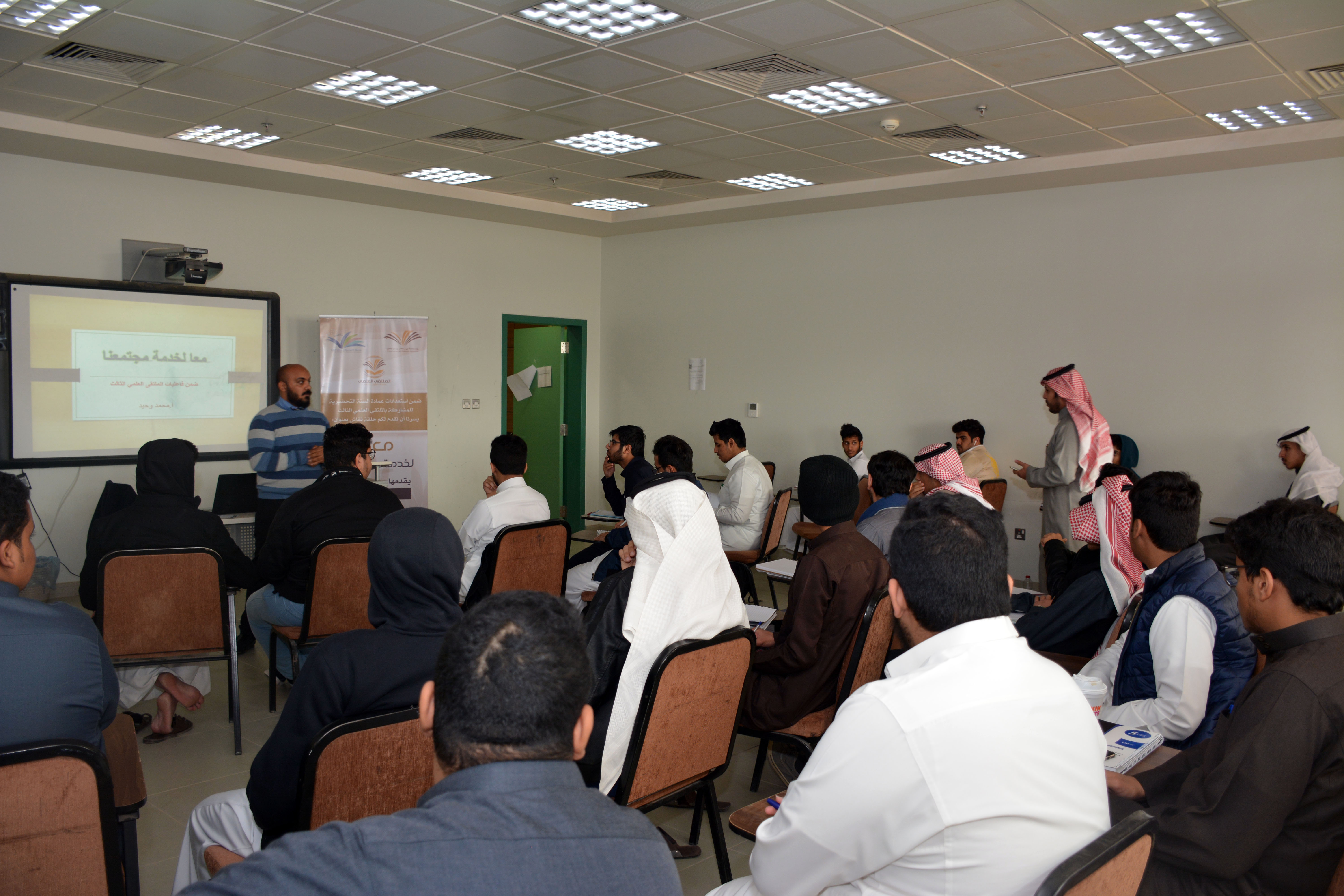 نظمت عمادة السنة التحضيرية دورة تدريبية بعنوان : " معا لخدمة مجتمعنا " قدمها الأستاذ محمد وحيد ، وذلك يوم الأربعاء 17/5/1440هـ، وتأتي هذه الفعالية ضمن استعدادات العمادة التي اتخذتها للمشاركة بالملتقى العلمي الثالث، وقد قدمت للطلاب بهدف تعريفهم بمحور المبادرات التطوعية ، وكيفية تحديد الأفكار والمشاريع التي من شأنها أن تصب في مصلحة المجتمع . وعرض وصور ونماذج للمبادرات التطوعية ، واختتمت الدورة بالإجابة عن استفسارات الطلاب وأسئلتهم
