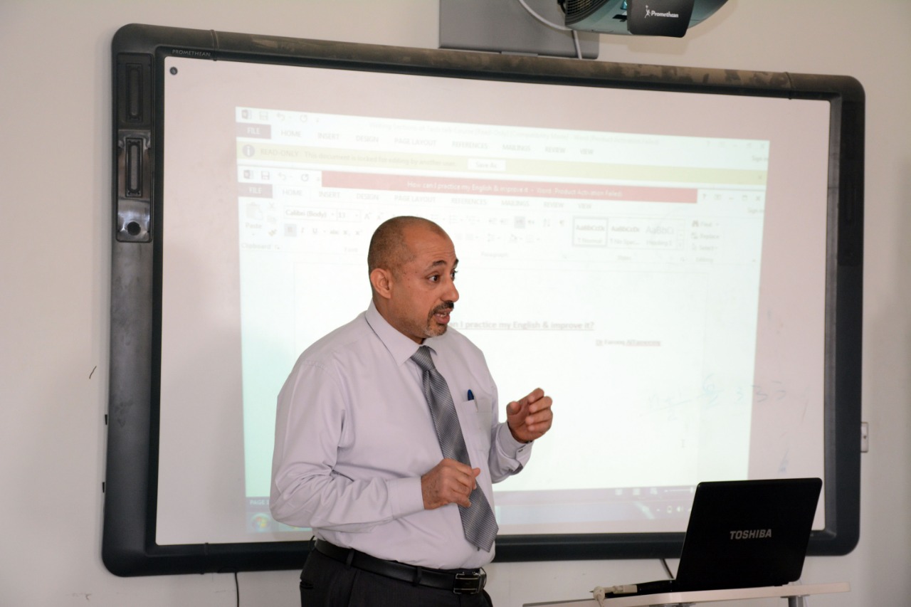 قدمها الدكتور فاروق التميمي، رئيس قسم اللغة الإنجليزية بالعمادة، وقد تناولت الدورة مجموعة من المحاور أهمها :الممارسات اليومية التى تمكنك من ممارسة اللغة وتحسينها، و الجوال وأهميته كوسيلة تعليمية، والمواقع الإلكترونية التي تساعدك على تعلم اللغة وممارستها