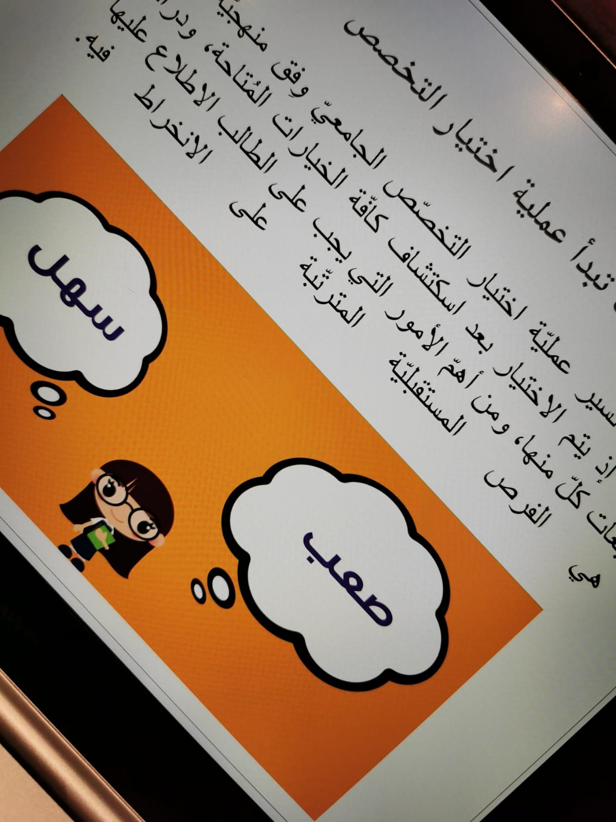 ضمن سلسلة فعاليات برنامج ( تخصصك) أُقيمت دورة تدريبية بعنوان ( خطوات اختيار التخصص) من تقديم الأستاذة / إلهام بنت تركي الرمالي وذلك يوم الأربعاء بتاريخ ٦/ ٨/ ١٤٤٣ هـ، وقد تطرقت المدربة إلى منهجيةاختيار التخصص الجامعي، كذلك أهم النقاط الأساسية التي تعتمد عليها الطالبة في تحديد التخصص المناسب لها. وأيضاً تم طرح مقياس للطالبات للتعرف على ميولهن المهنية التي تساعدهن بتحديد مايناسبهن .واختتمت الدورة بأسئلة من الطالبات وذكر بعض النصائح المعينة لهن.
