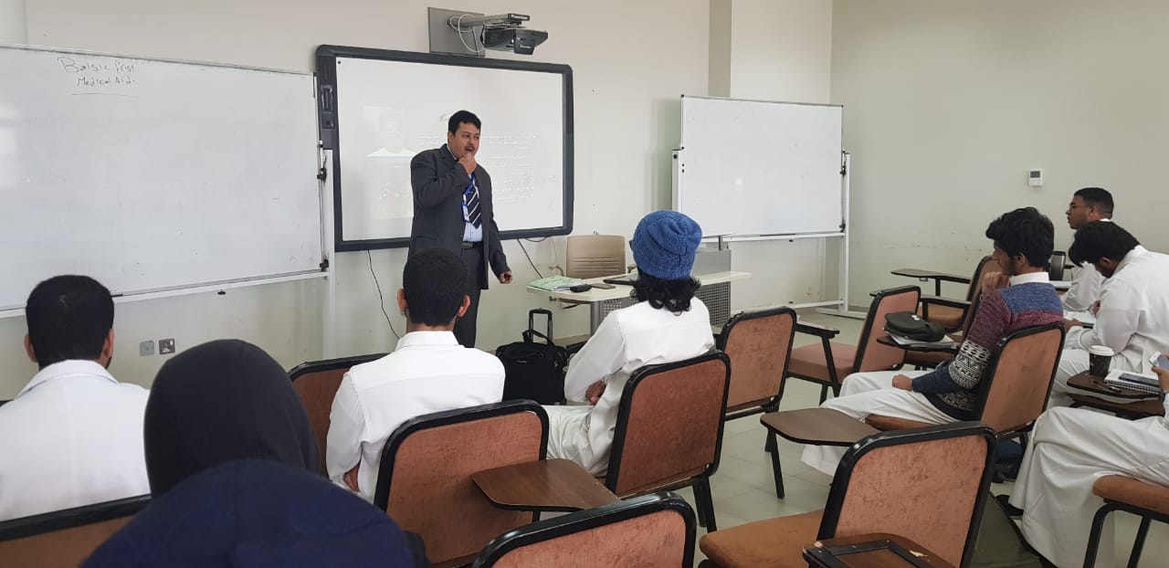 نظمت عمادة السنة التحضيرية ممثلة بوحدة الأنشطة الطلابية وبالتعاون مع وحدة العلوم الأساسية اليوم الأربعاء 30 / 3 / 1441هـ دورة بعنوان : " الإسعافات الأولية " قدمها الأستاذ : محمد السيد عبدالوهاب