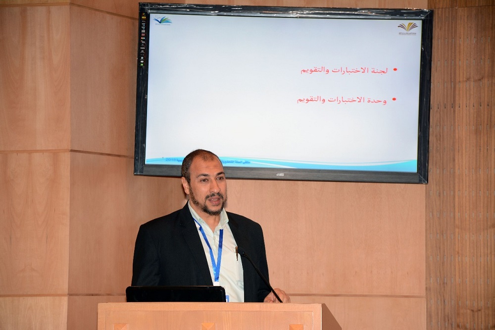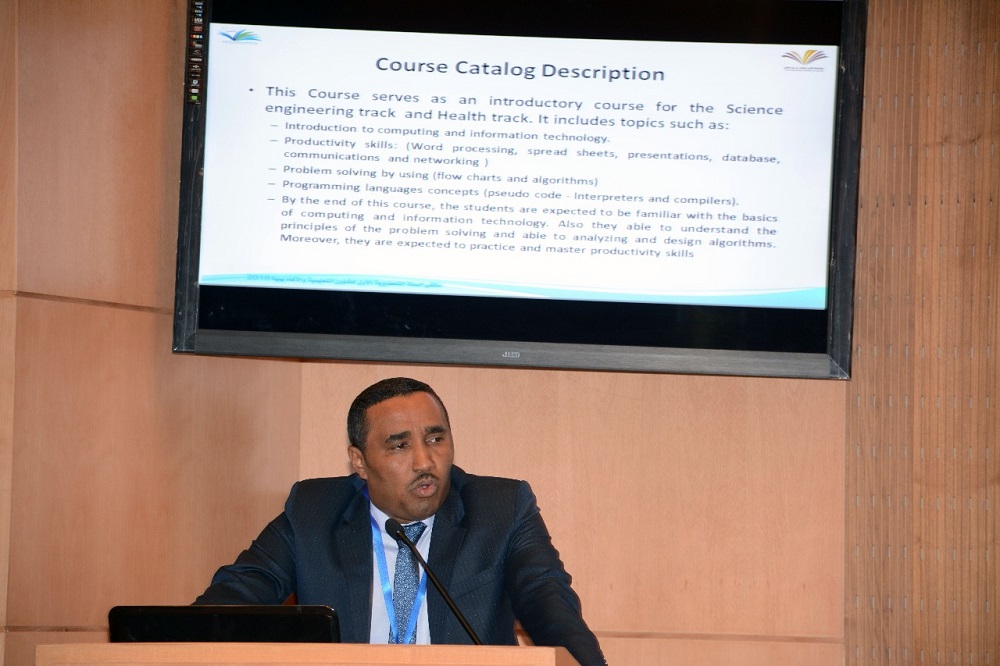 عقب ذلك تقدم مشرفو الوحدات التعليمية ومشرف وحدة الاختبارات في العمادة بتقديم عروض تعريفية بالمقررات التعليمية التي تقدمها العمادة ضمن وحداتها الممثلة في: وحدة اللغة الإنجليزية ،ووحدة العلوم الأساسية، ووحدة مهارات تطوير الذات ، بالإضافة إلى مهام وحدة الاختبارات والتقويم.